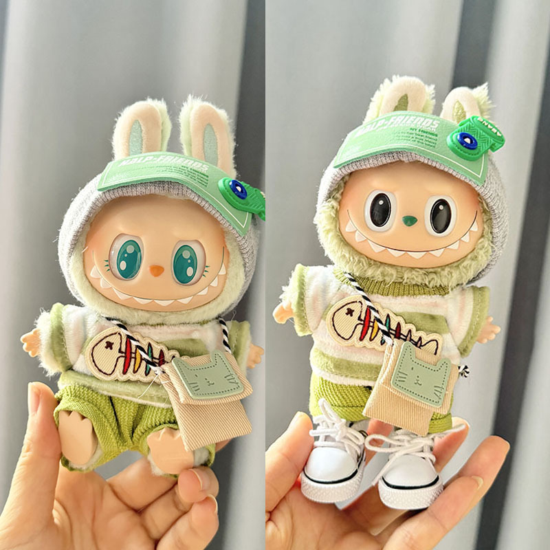 POPMART泡泡玛特 LABUBU搪胶公仔衣服拉布布娃衣委屈屈果果套装潮