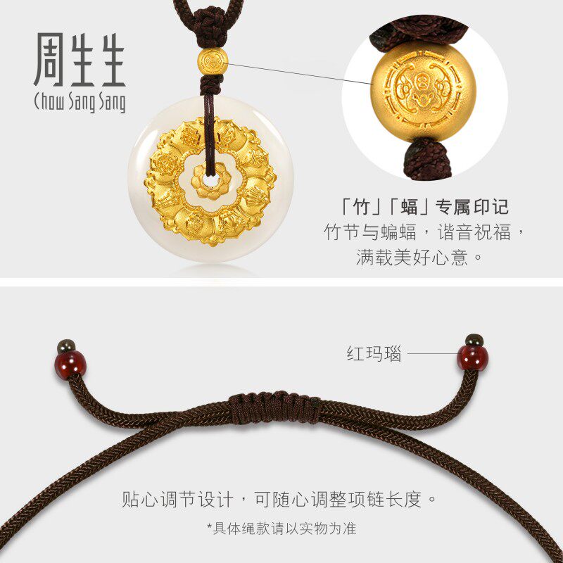 周生生华宇古法黄金足金镶嵌和田玉八瑞相八宝罗盘项链94437Z定价