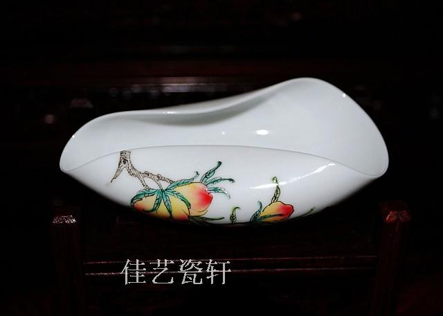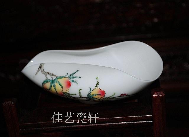 景德镇高档精品手绘重工粉彩寿桃陶瓷茶铲餐饮具功夫茶具茶勺茶匙
