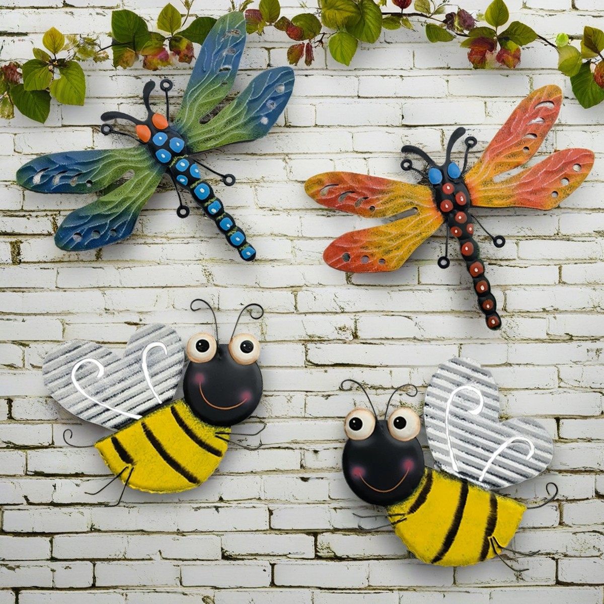 铁艺蜻蜓壁饰庭院墙面装饰品背景墙田园风格创意昆虫壁挂花园布置