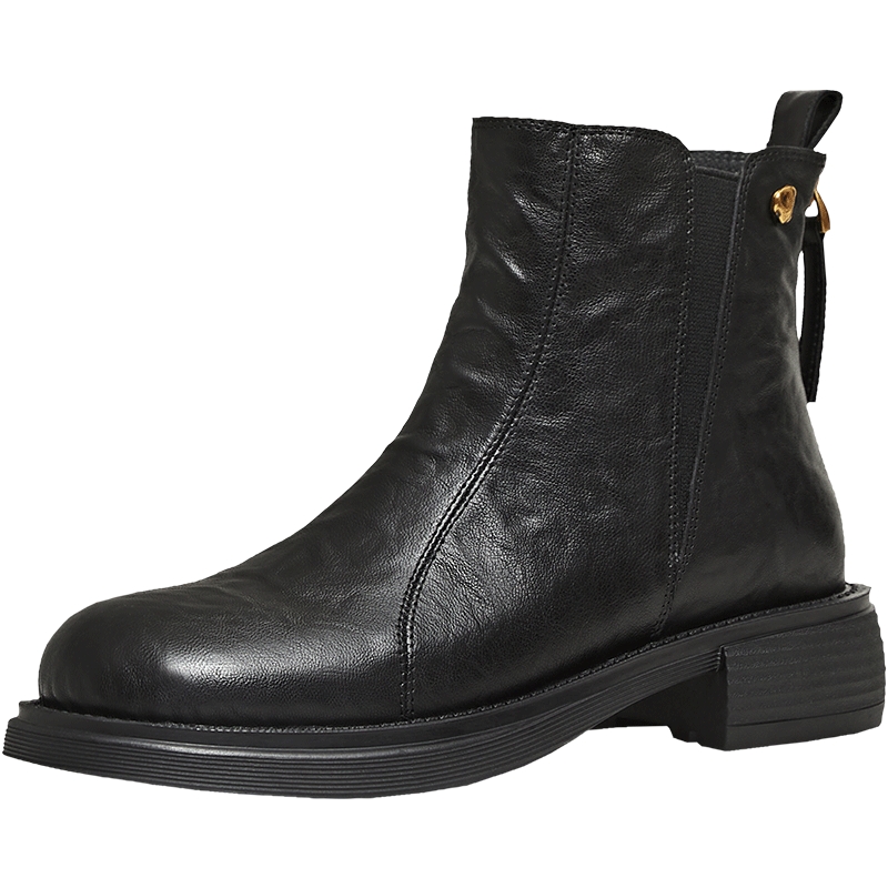 天美意复古厚底加绒切尔西短靴女鞋子瘦瘦靴时装靴皮靴2025冬新款