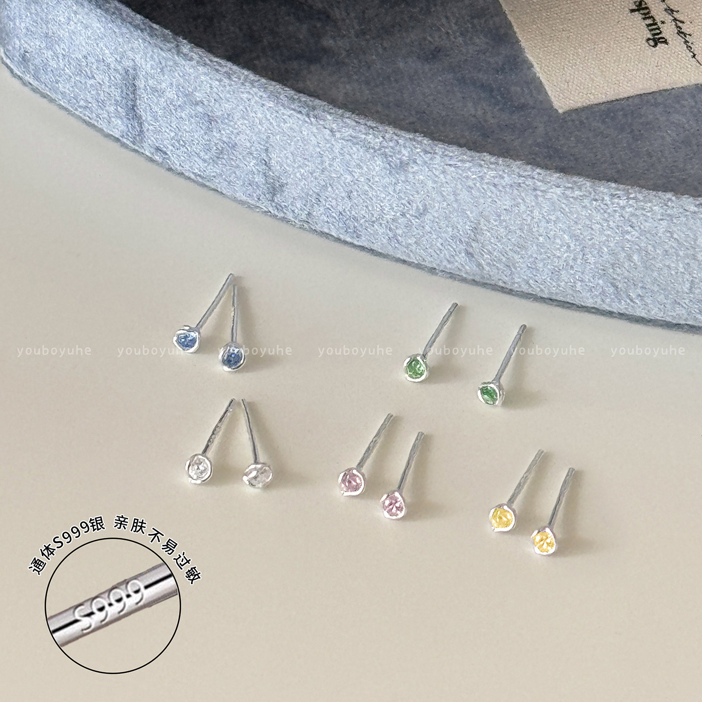 S999纯银针迷你锆石耳钉女高级感精致小巧养耳洞耳环睡觉免摘耳饰