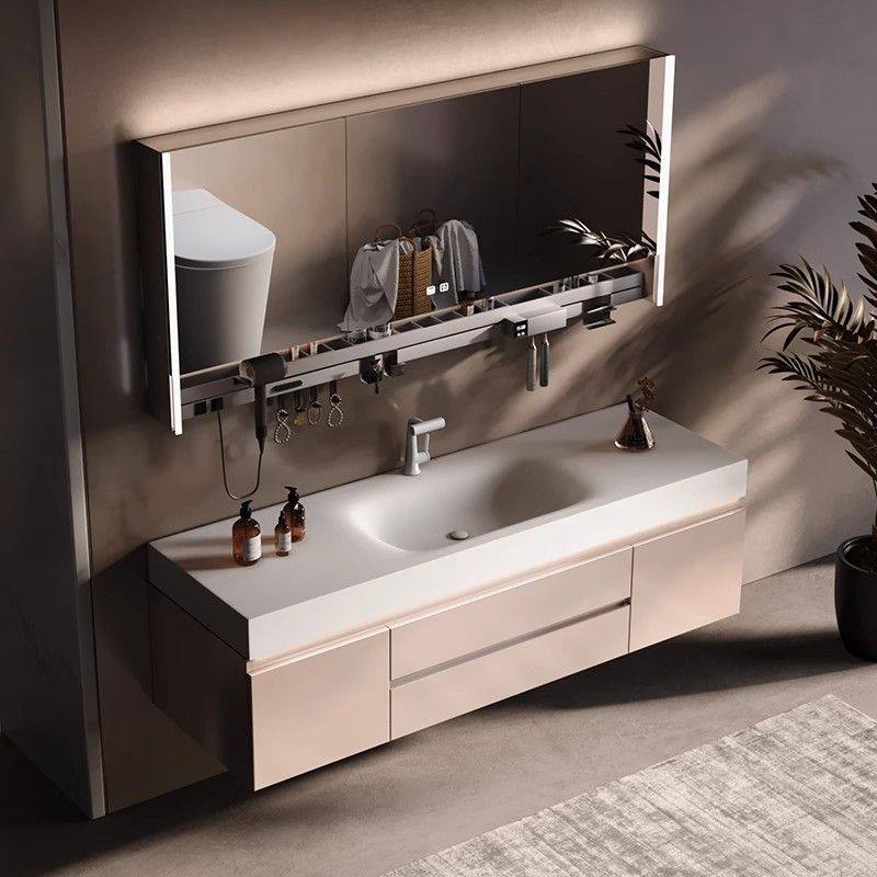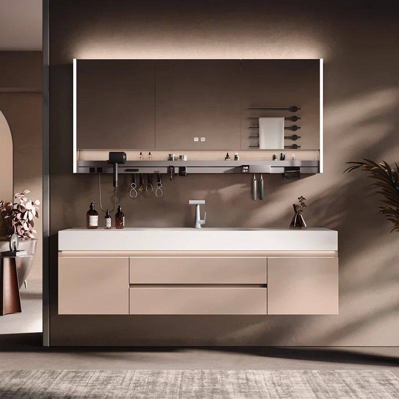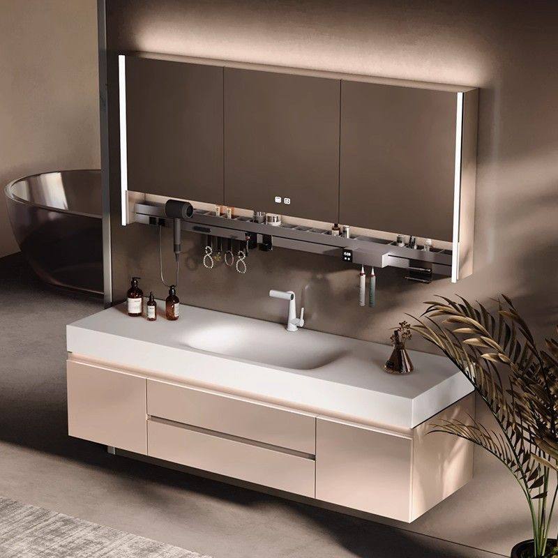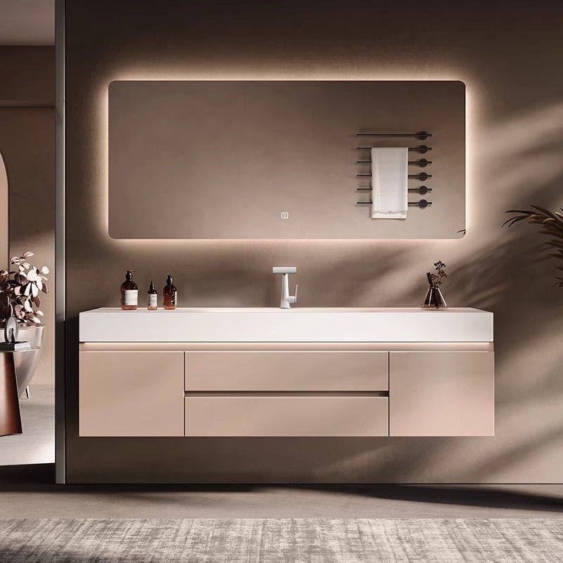 莫顿法式奶油风岩板热弯一体盆浴室柜组合卫生间洗漱盆洗脸盆洗手