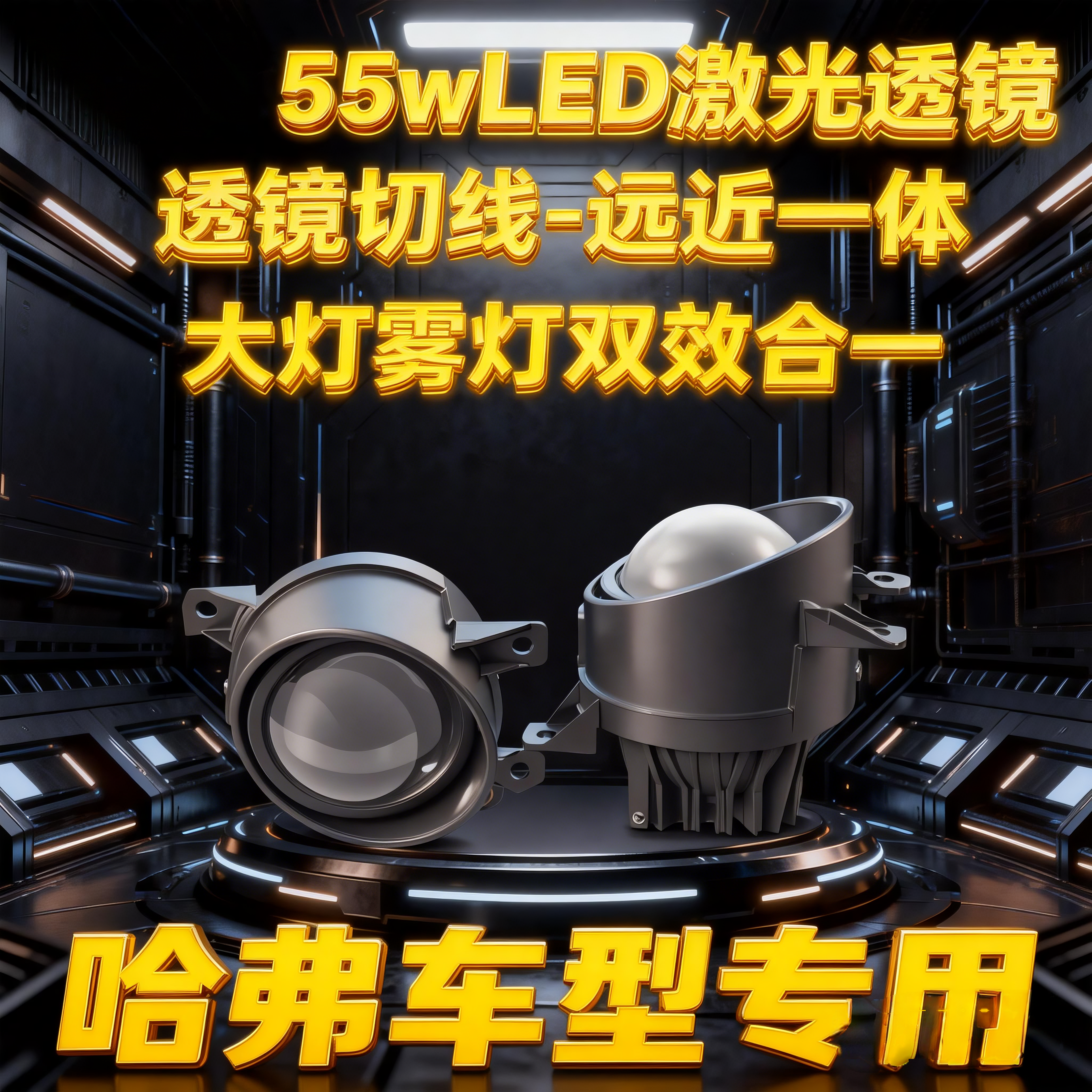 适用于哈弗h9H6H4H2F5长城炮M4C50雾灯改装双直射led激光双头透镜
