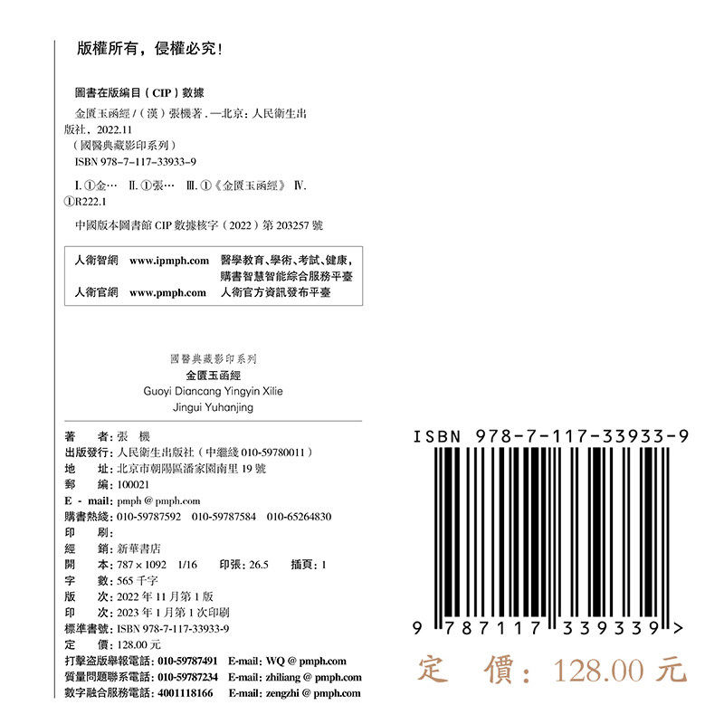 现货正版 金匱玉函經 國醫典藏影印系列 张机 人民卫生出版社9787117339339