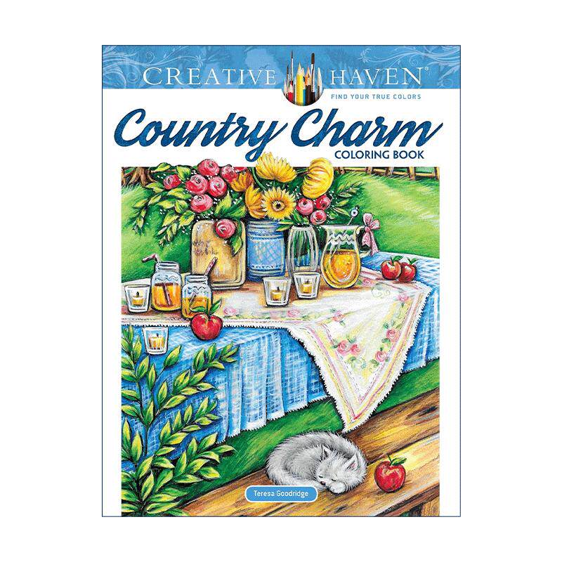 英文原版 Creative Haven Country Charm Coloring Book 创意保护区 乡村魅力 填色涂色书 田园风光 农场 古董橱窗 减压 休闲娱乐