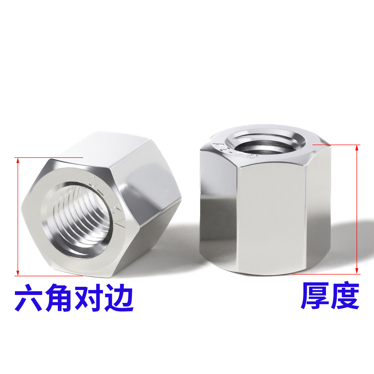 304不锈钢加长螺母接头六角加厚螺帽加高螺丝帽大全M3M4M5M6M8M12