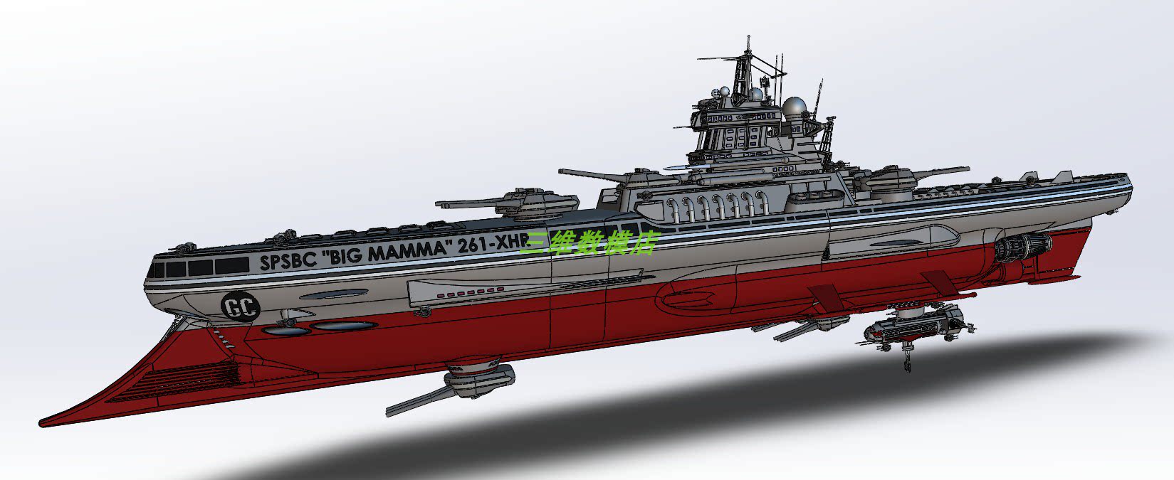军舰巡洋舰3D三维几何数模型曲面造型stp图纸Solidworks大型船舶