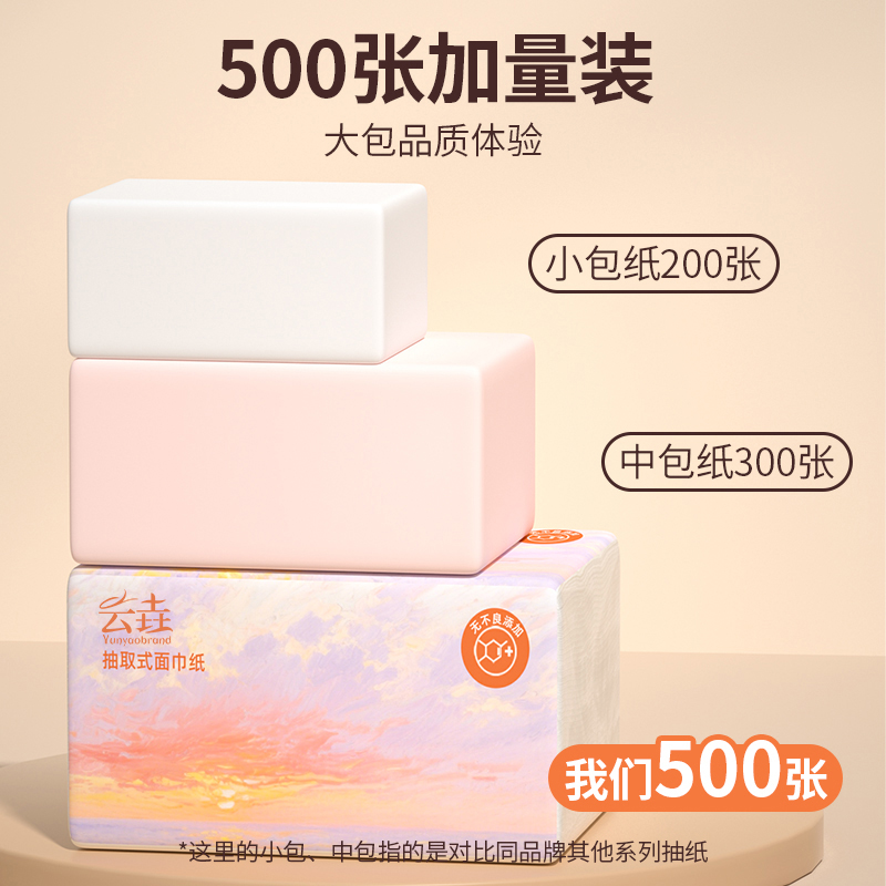 加量500张40大包抽纸家用卫生纸厨房餐巾纸整箱擦手纸厕纸实惠装