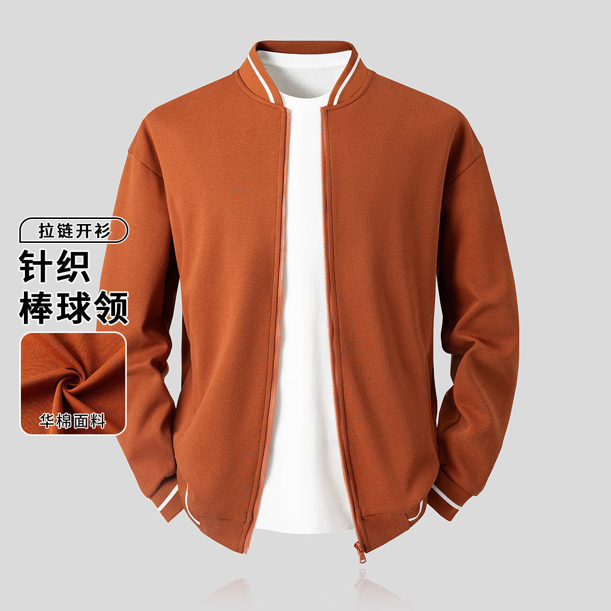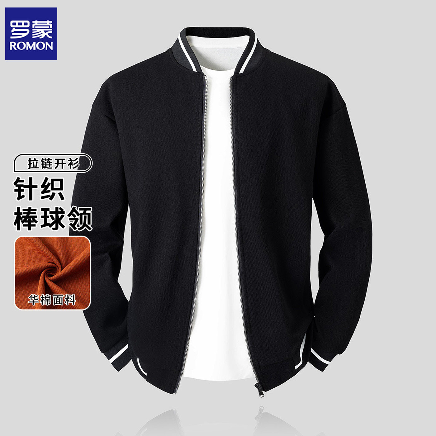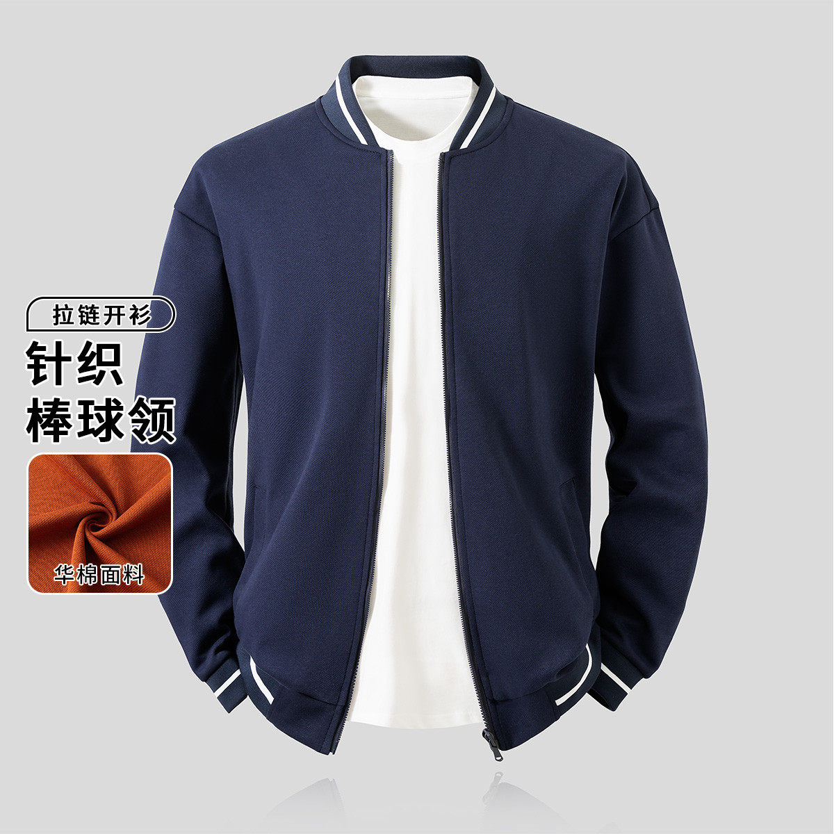 罗蒙星空华棉春秋新款男士棒球领夹克棒球服休闲运动针织拉链开衫