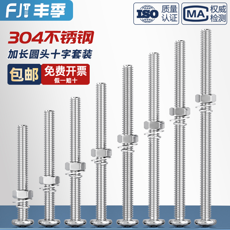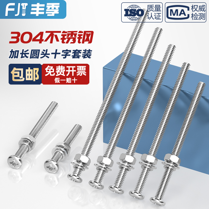 304不锈钢十字圆头螺丝螺母组合套装加长特长螺杆螺钉MM2M3M4M5M6