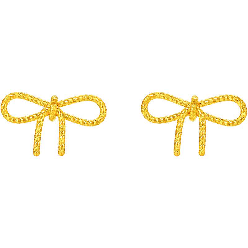 周六福黄金计价5G足金耳钉小小蝴蝶结耳饰少女心事节日礼物