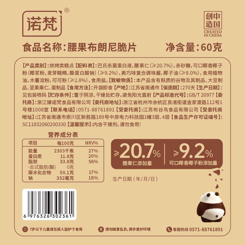 诺梵腰果布朗尼脆片巧克力坚果薄脆饼干烘焙休闲网红小零食