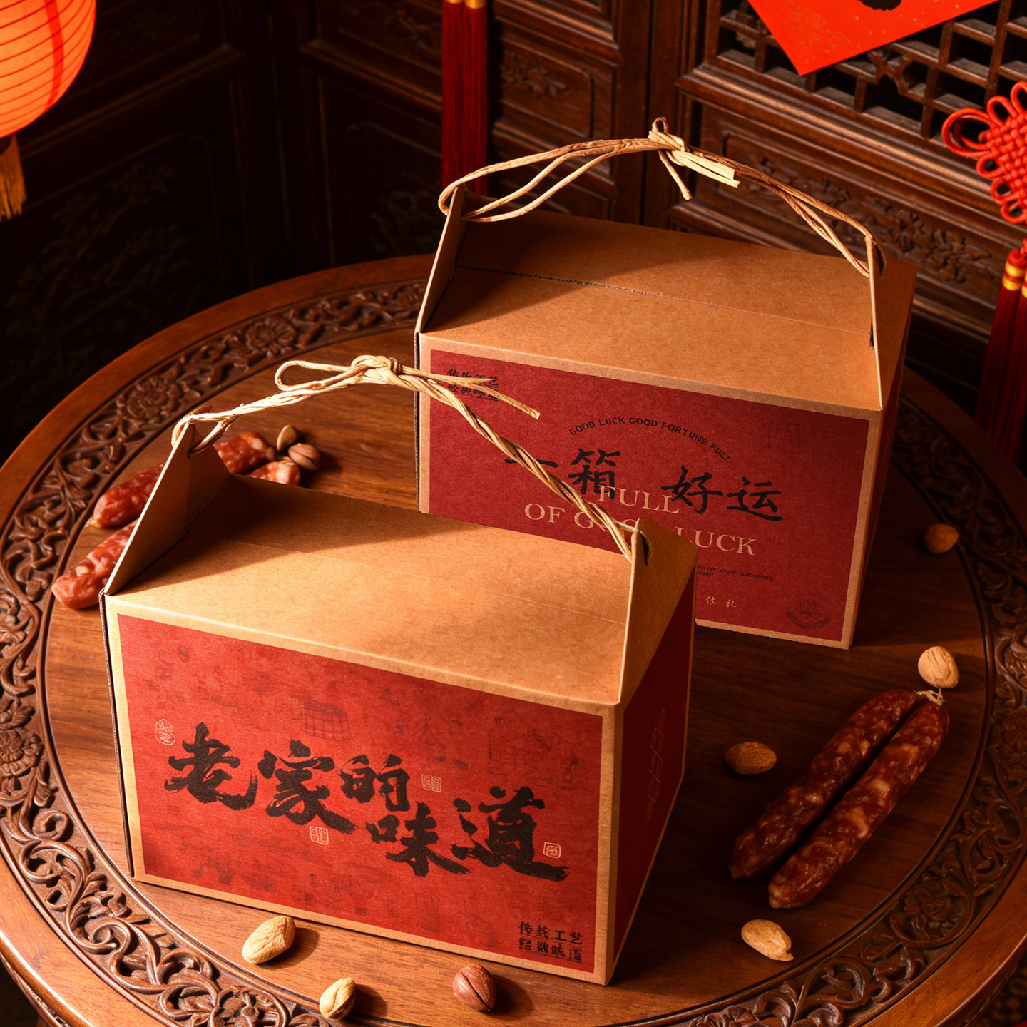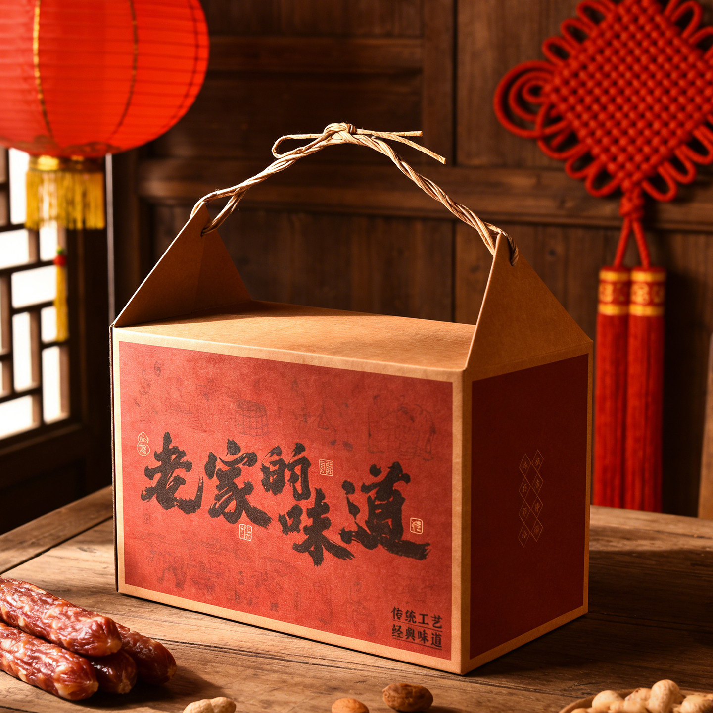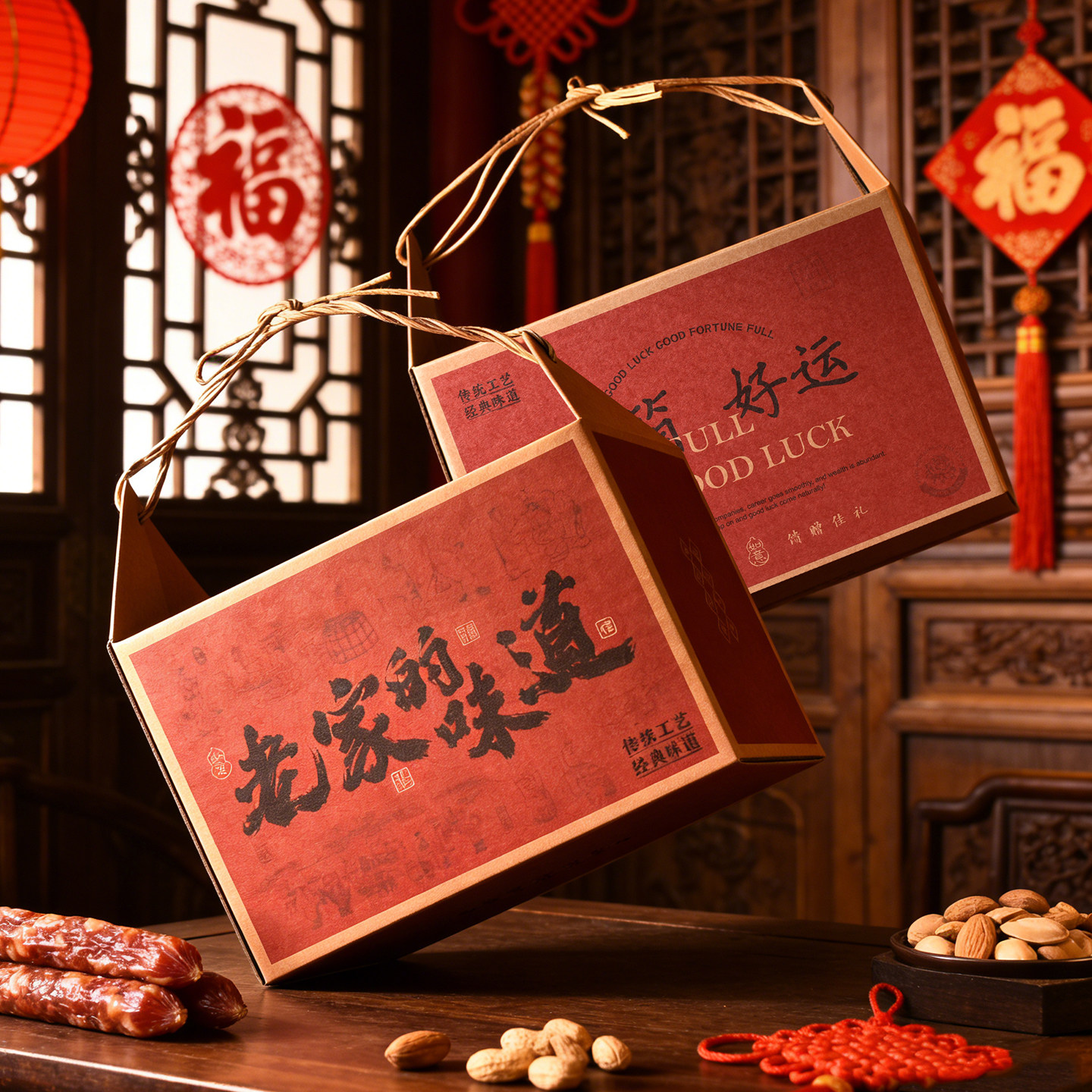 2026马年货礼品盒子腊肉熟食土特产春节新年手提包装盒礼盒空大盒