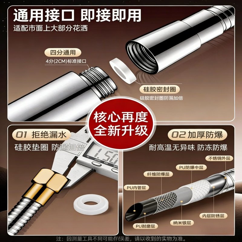 不锈钢淋浴花洒软管通用热水器花洒连水管浴室莲蓬头喷头沐浴软管