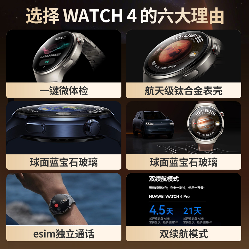 【咨询领券】华为WATCH 4pro智能运动手表esim独立通话电话腕表一键微体检心率房颤高血糖风险评估男女款手表