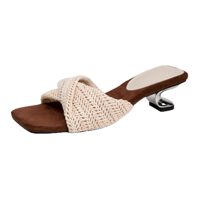 羊皮版!编织坡跟罗马凉鞋女设计感度假风沙滩厚底凉拖鞋女夏外穿