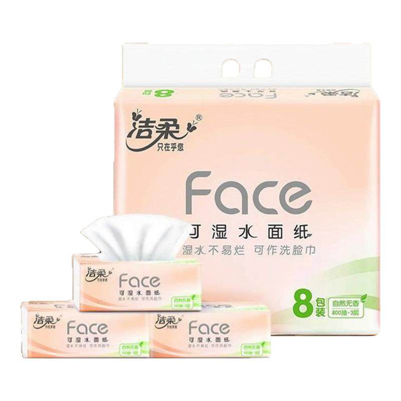 【88VIP直播积分】洁柔粉face无香抽纸可湿水面纸3层100抽*8包/提