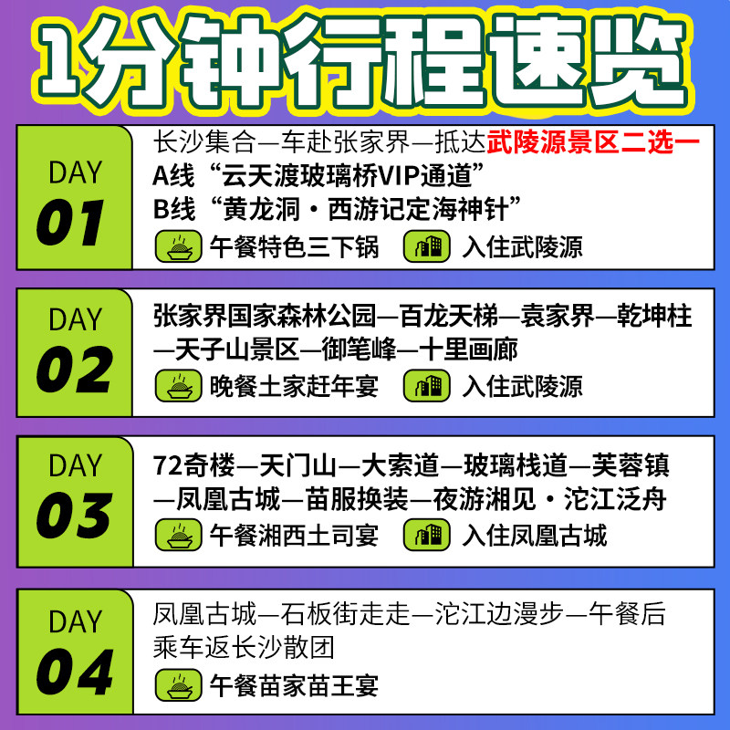 2+1航空座巴士|张家界旅游4天3晚纯玩跟团森林公园天门山凤凰古城