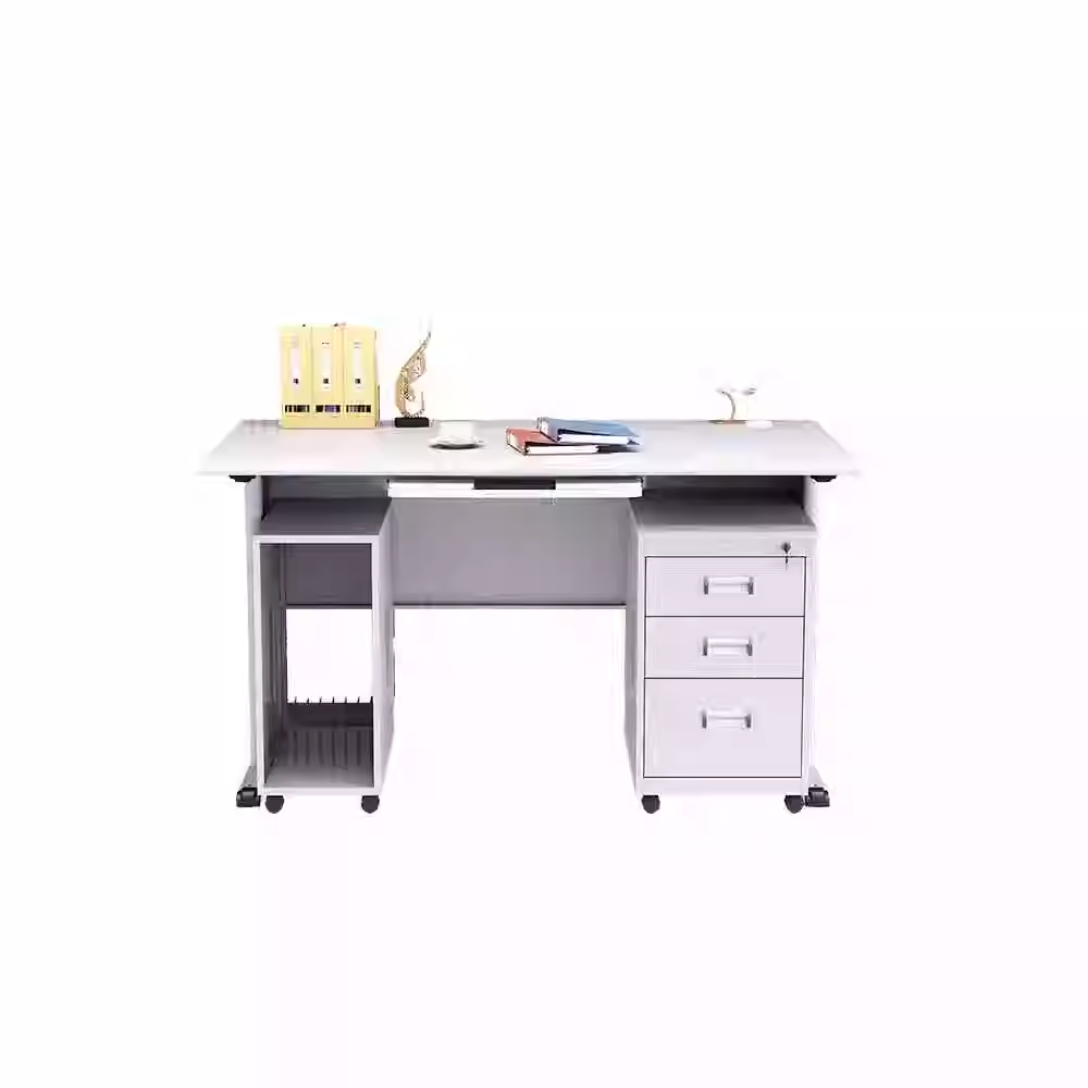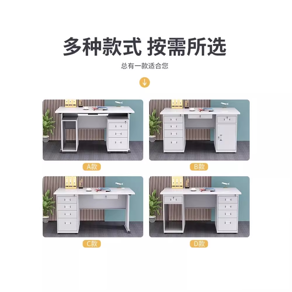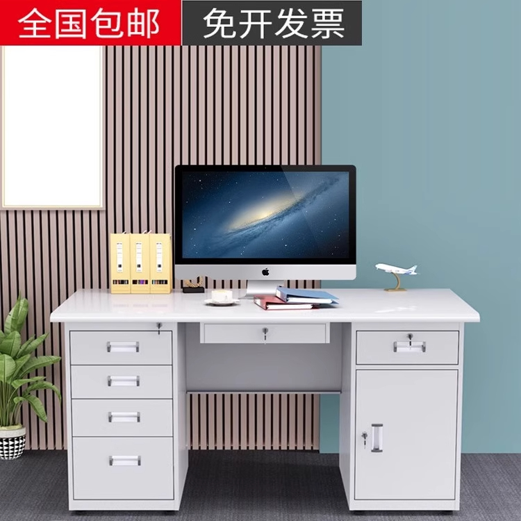 加厚钢制办公室电脑桌子铁皮单人抽屉不锈钢工作台带锁抽屉写字台
