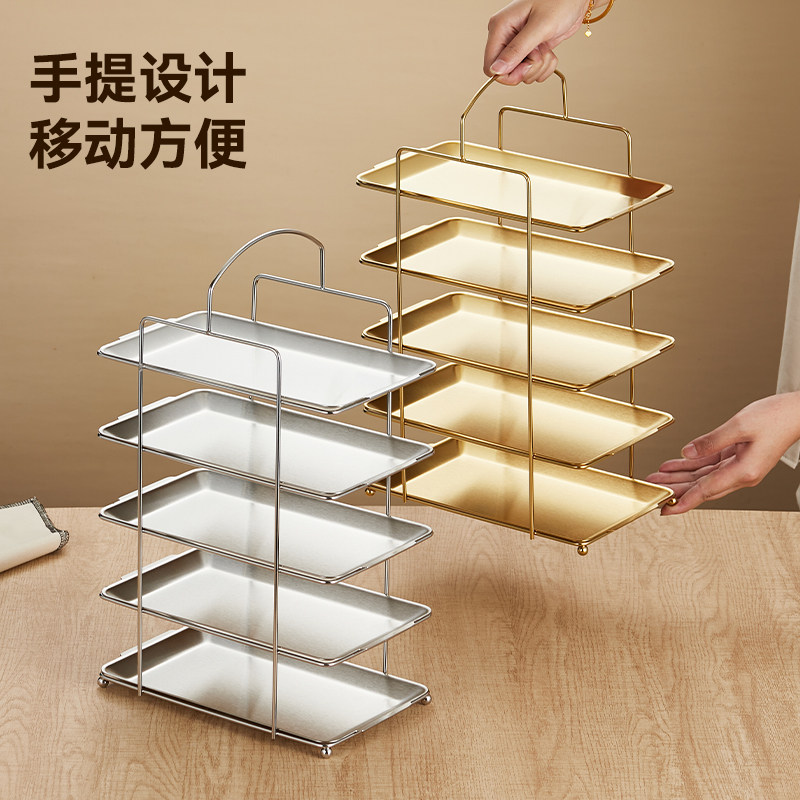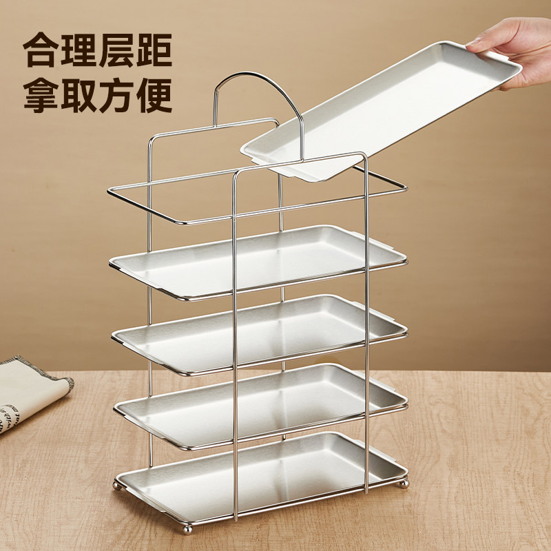 直供商用火锅烤肉店长方形盘收纳架不锈钢配菜盘架多层备菜置物架