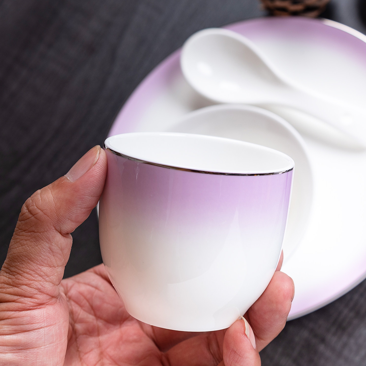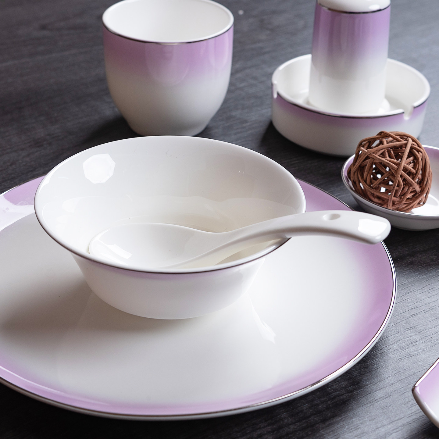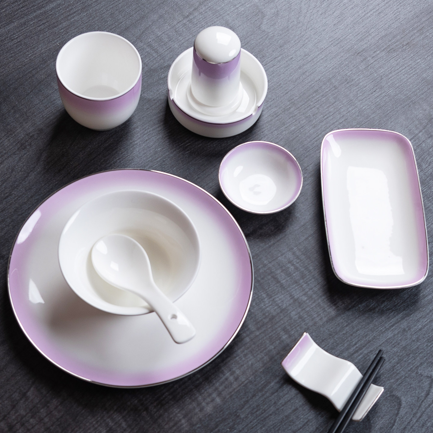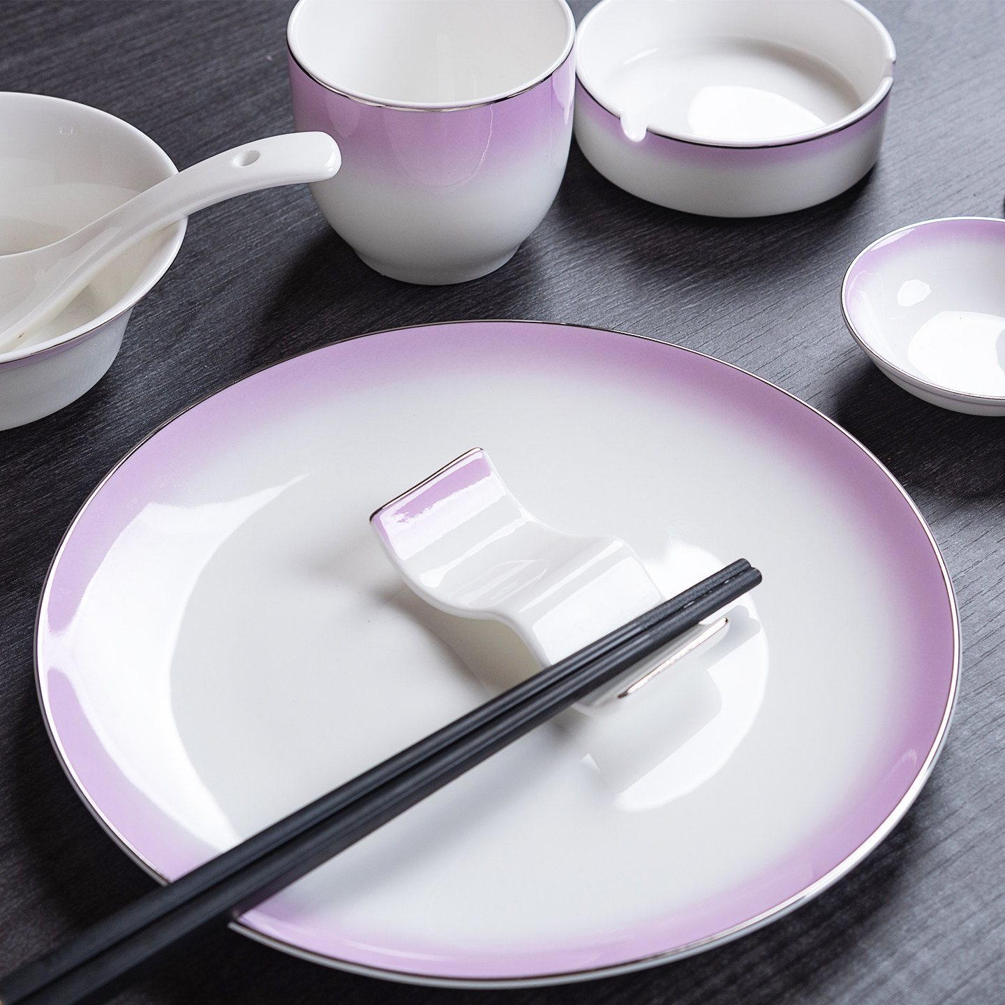 酒店摆台餐具配套烟灰缸牙签筒毛巾碟筷子架碗盘瓷餐饮釉下彩渐变