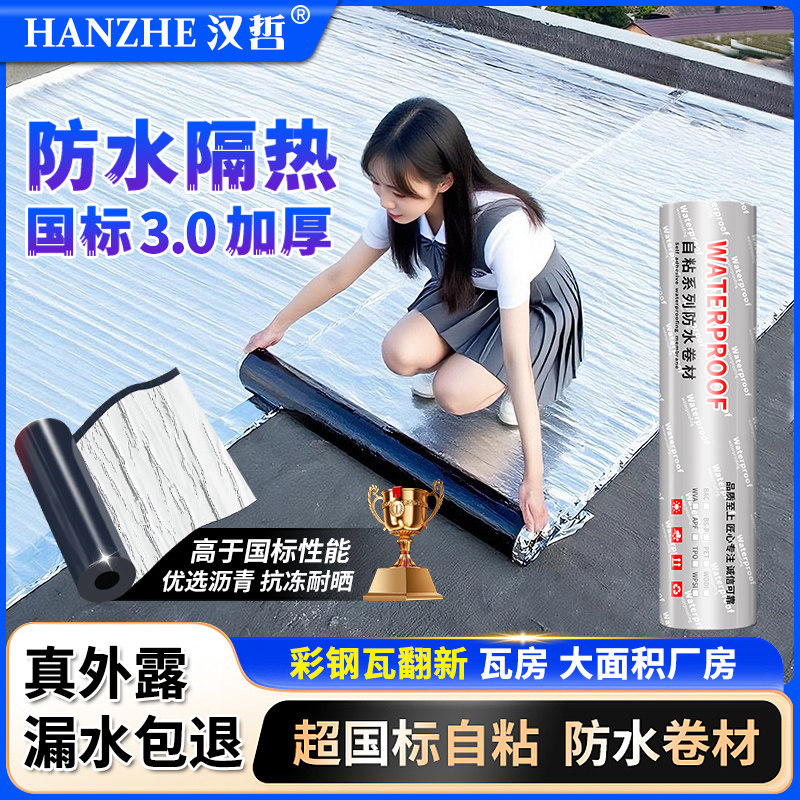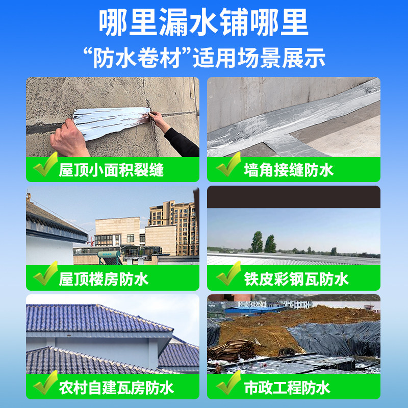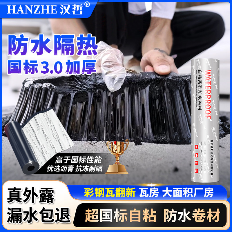 屋顶防水卷材sbs沥青自粘贴屋顶裂缝彩钢瓦隔热补漏材料油毛毡
