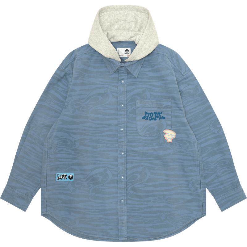 Aape旗舰女装春秋爱心猿人宽松连帽水洗长袖衬衫外套8510XAN