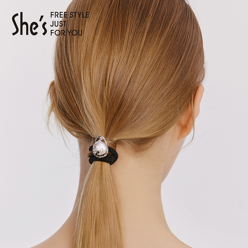 shes茜子凡尔赛之梦淡水珍珠时尚简约通勤发圈马尾皮筋发绳发饰女