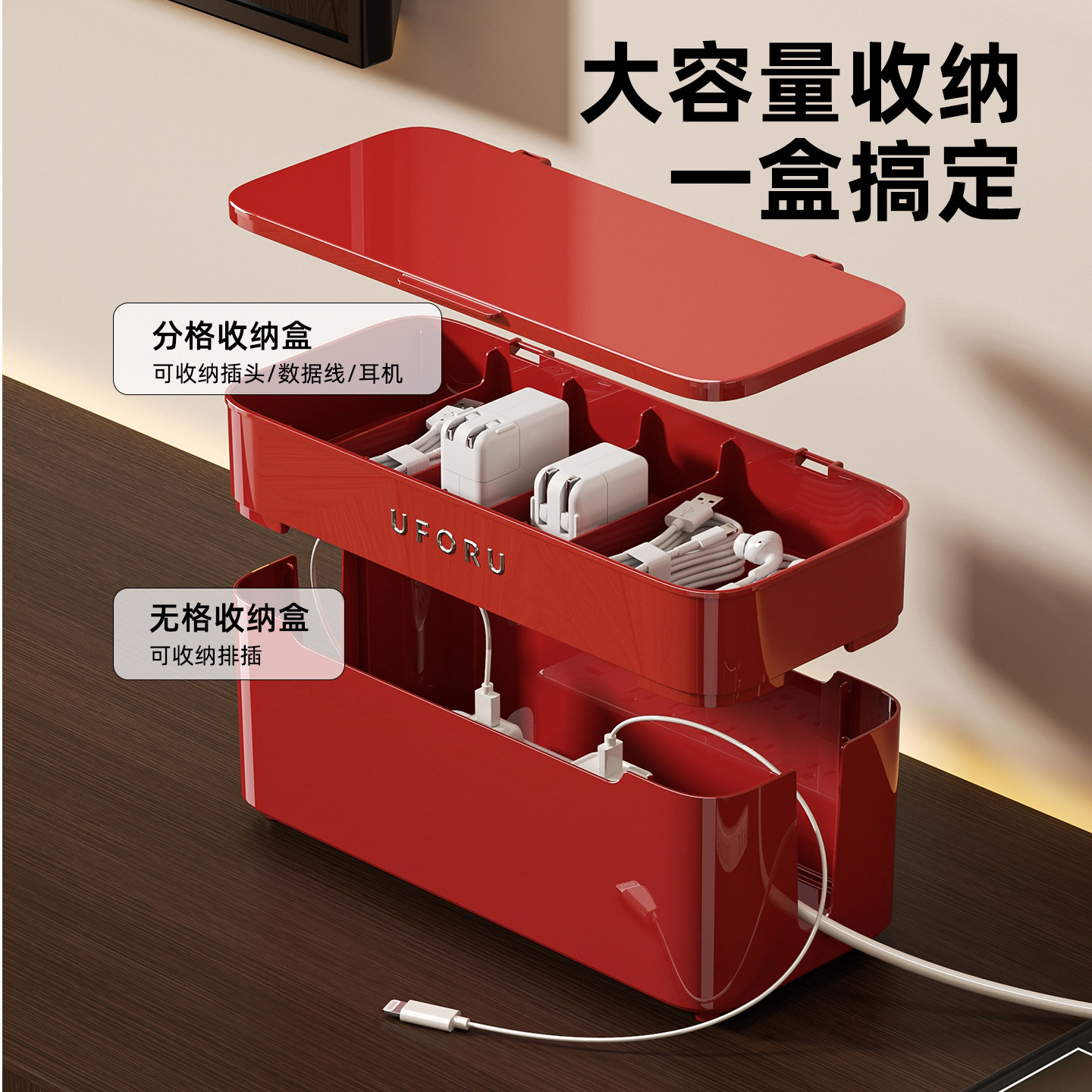 电线收纳盒桌面整理盒插排插座插线板电源线数据线充电器遮挡神器
