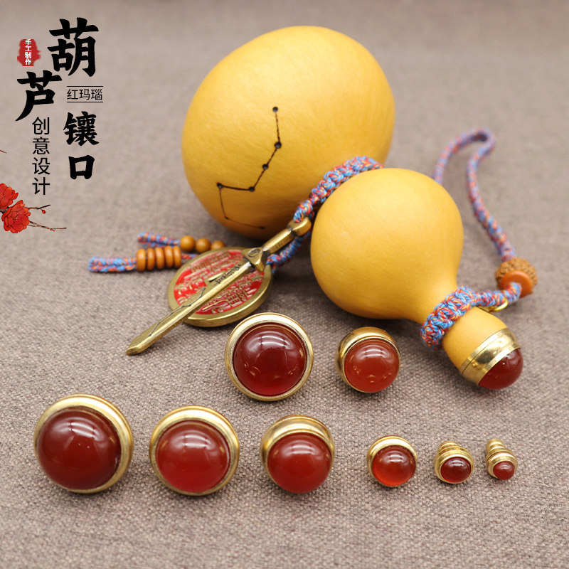 创意小葫芦镶口配饰玛瑙玉髓盖帽文玩工艺品八卦鼻烟壶嘴手工饰品