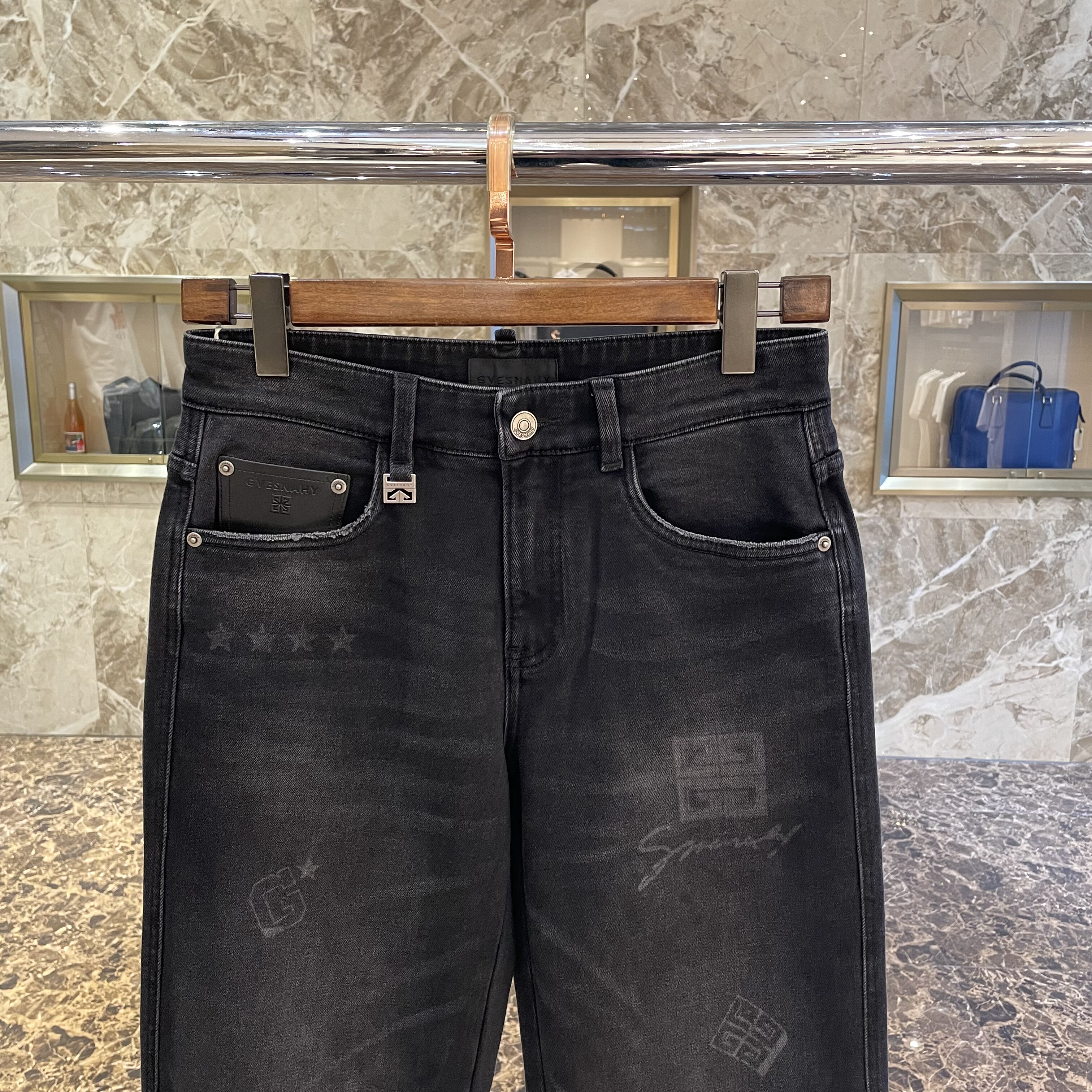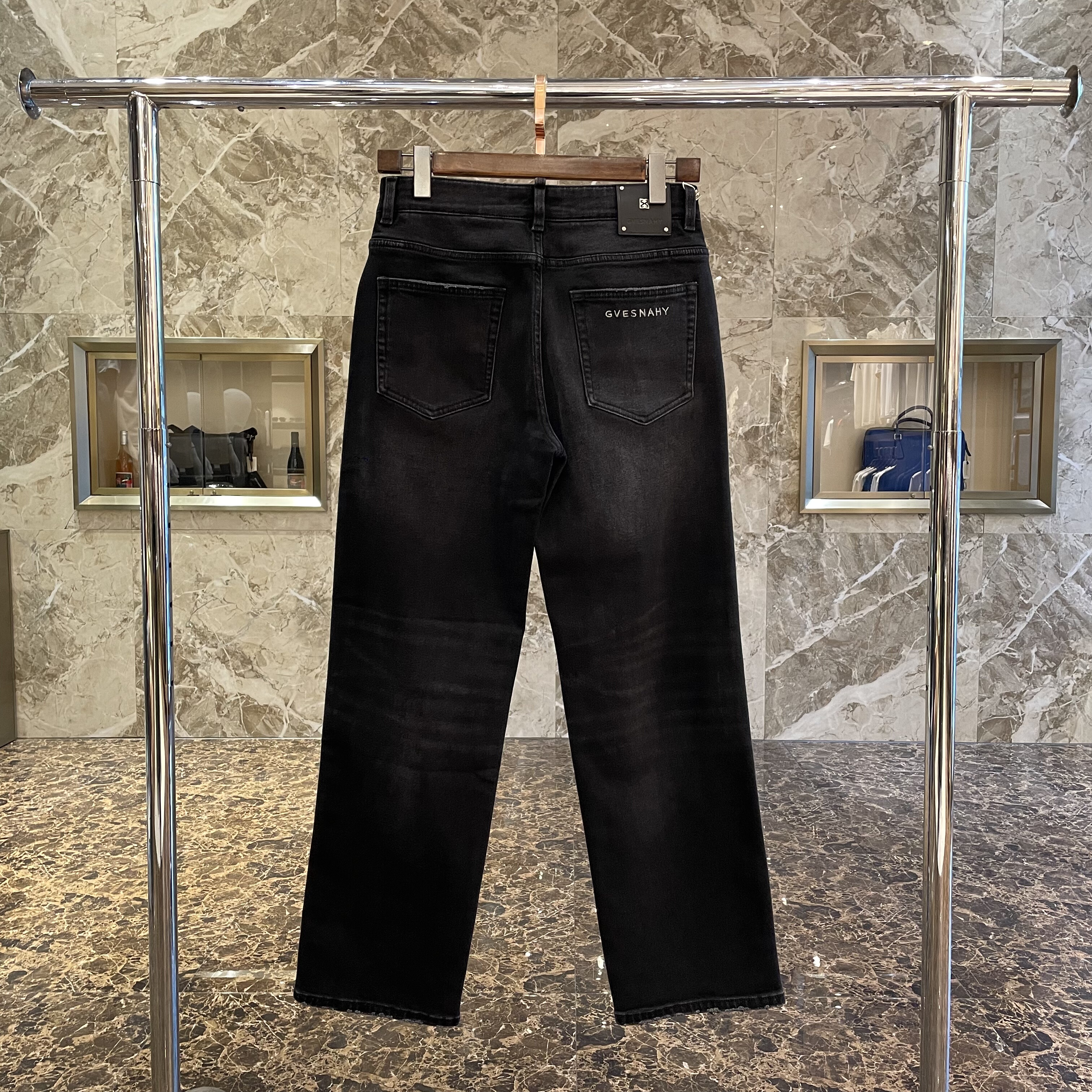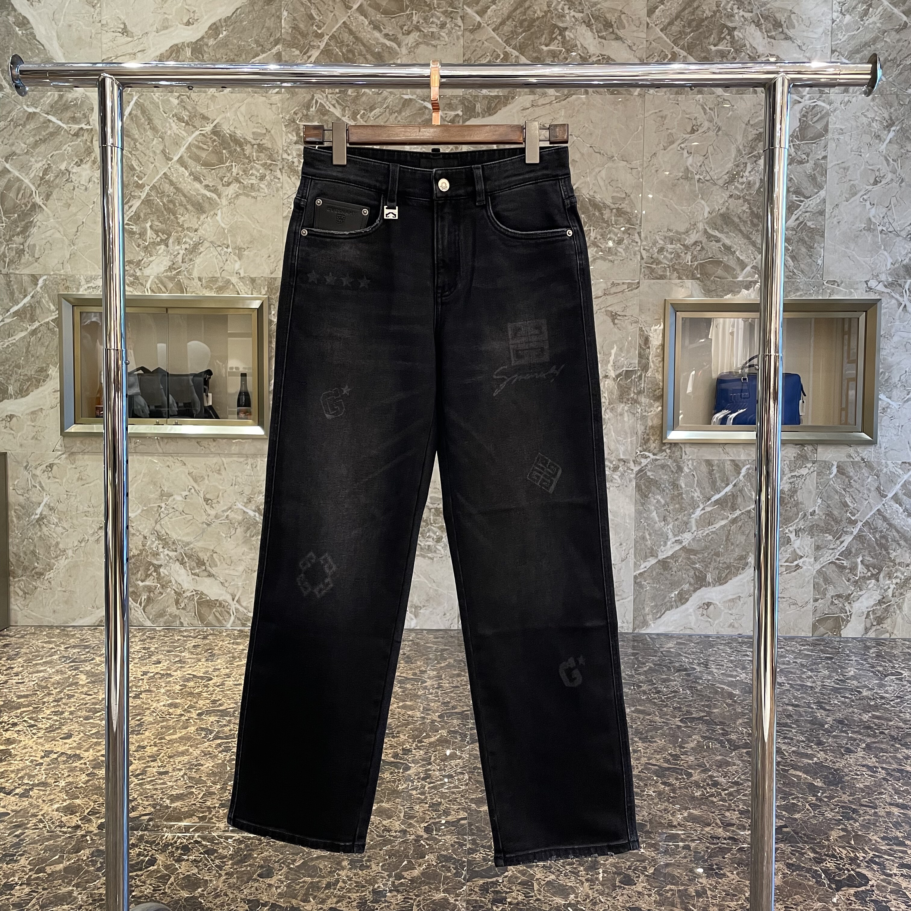 GVESNAHY男装2025秋冬新款男士时尚字母抓绒直筒阔腿牛仔裤正品