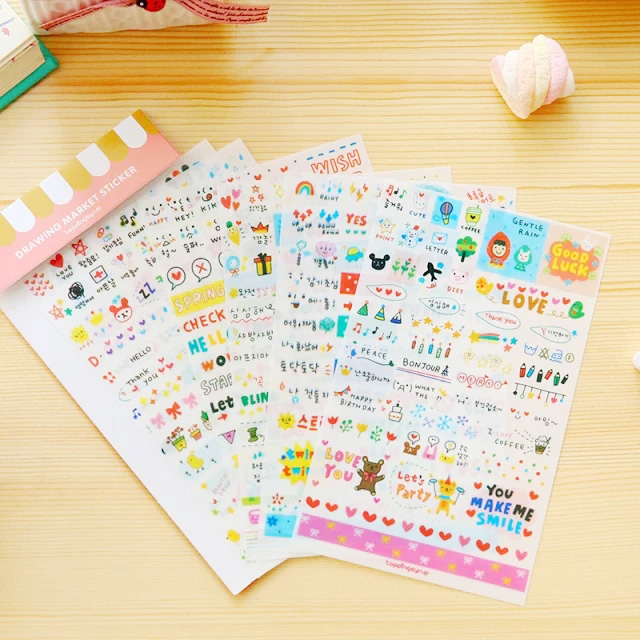 韩国绘画人生透明贴膜手帐PVC贴纸日记相册卡通贴纸手机贴图