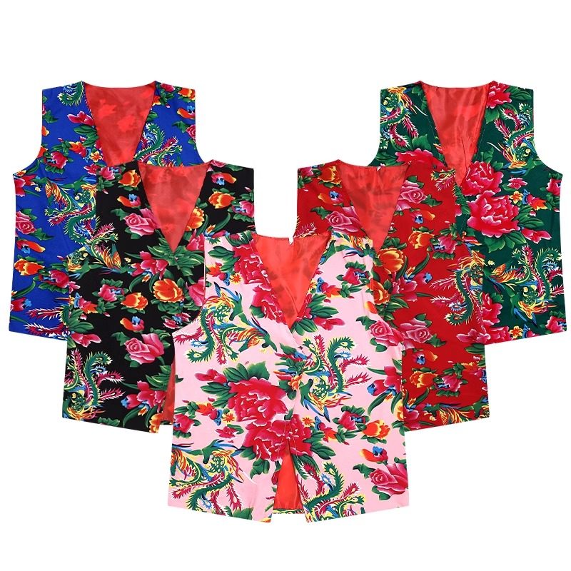 东北大花布马甲男女坎肩民族风舞台姐妹装二人转年会表演网红嘻哈
