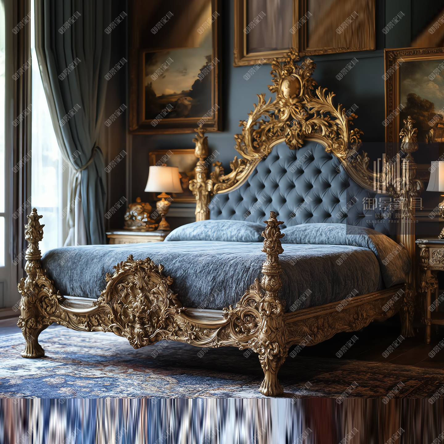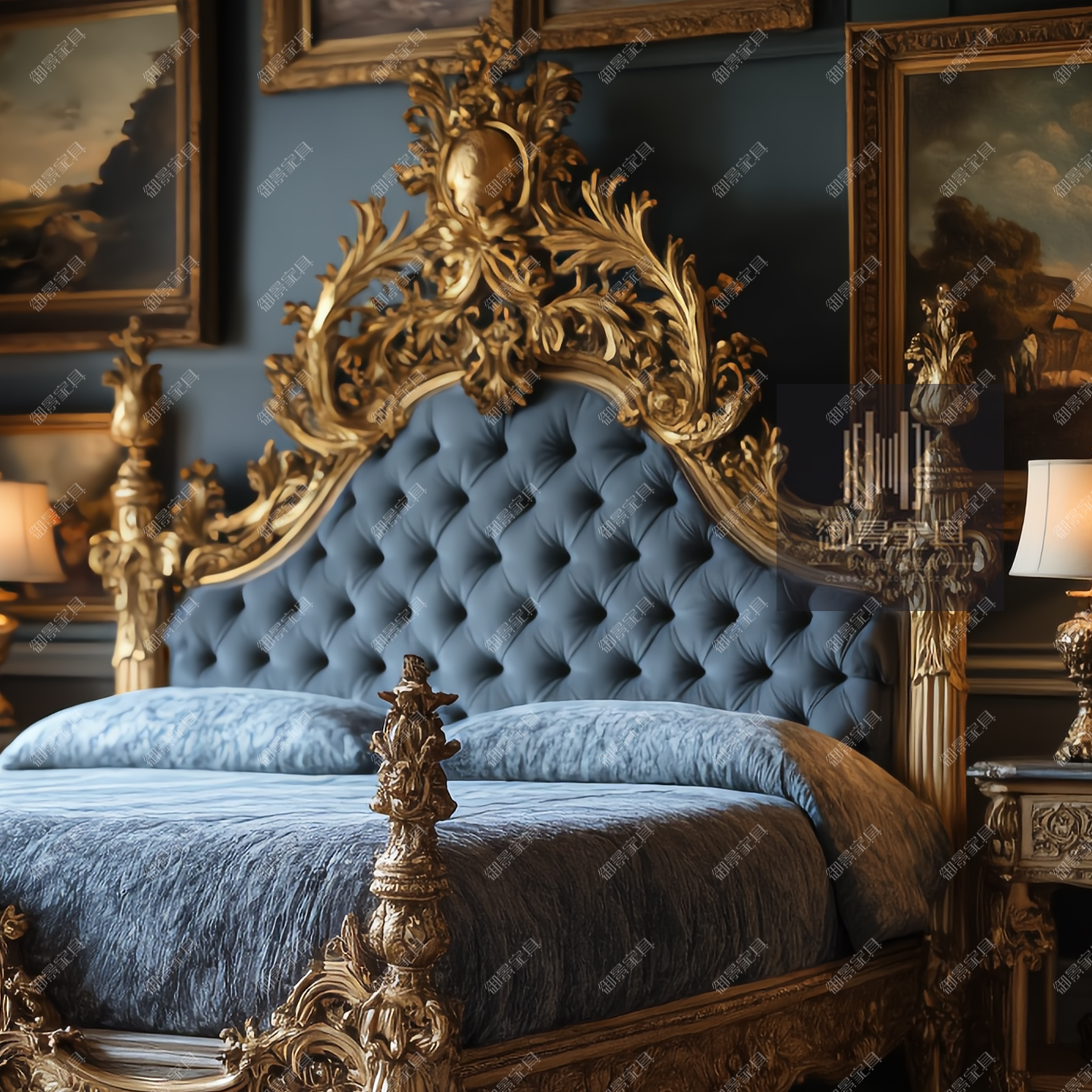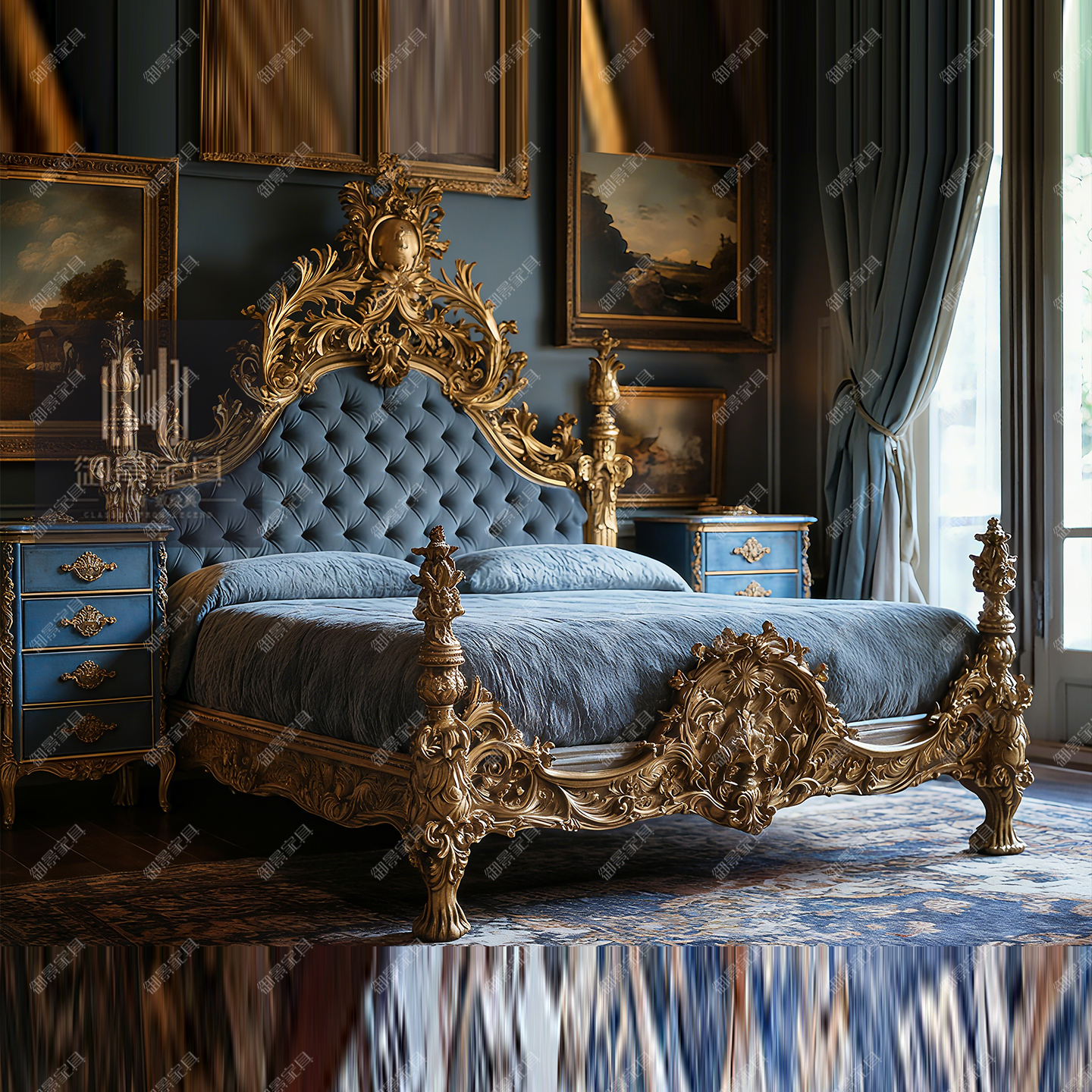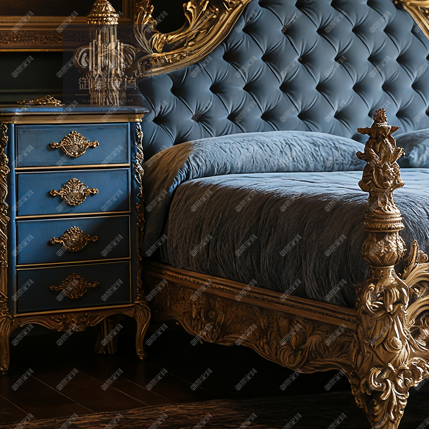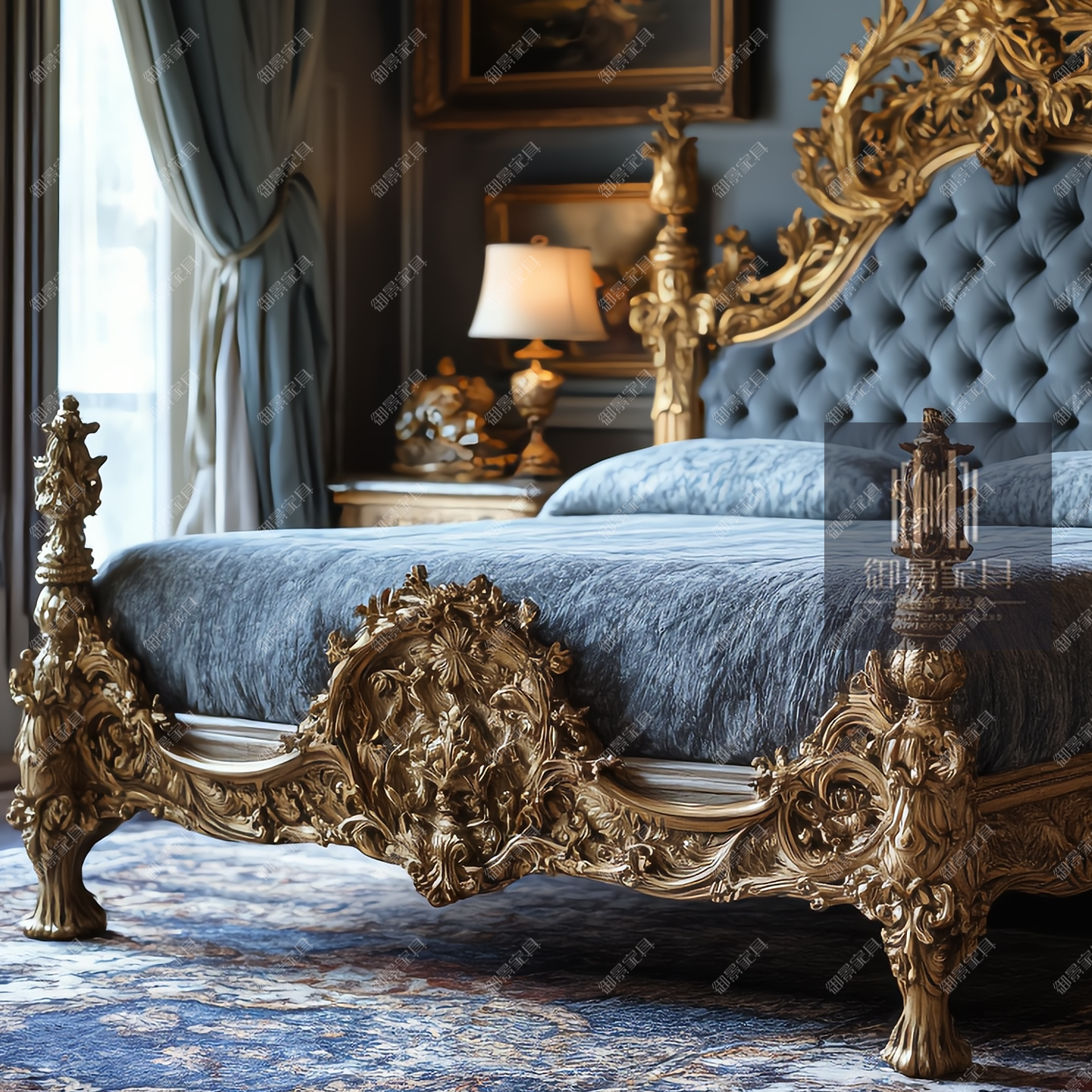 法式巴洛克柱子床欧式雕花婚床布艺实木床金箔做旧公主床住宅家具