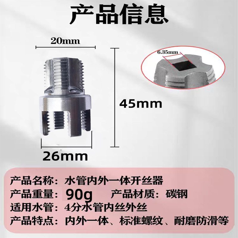 水管内外一体开丝器电钻款4分6分板牙攻丝连体工具PPR取丝+套丝