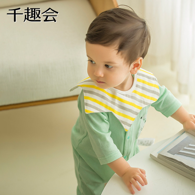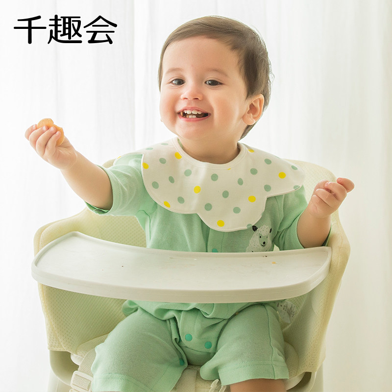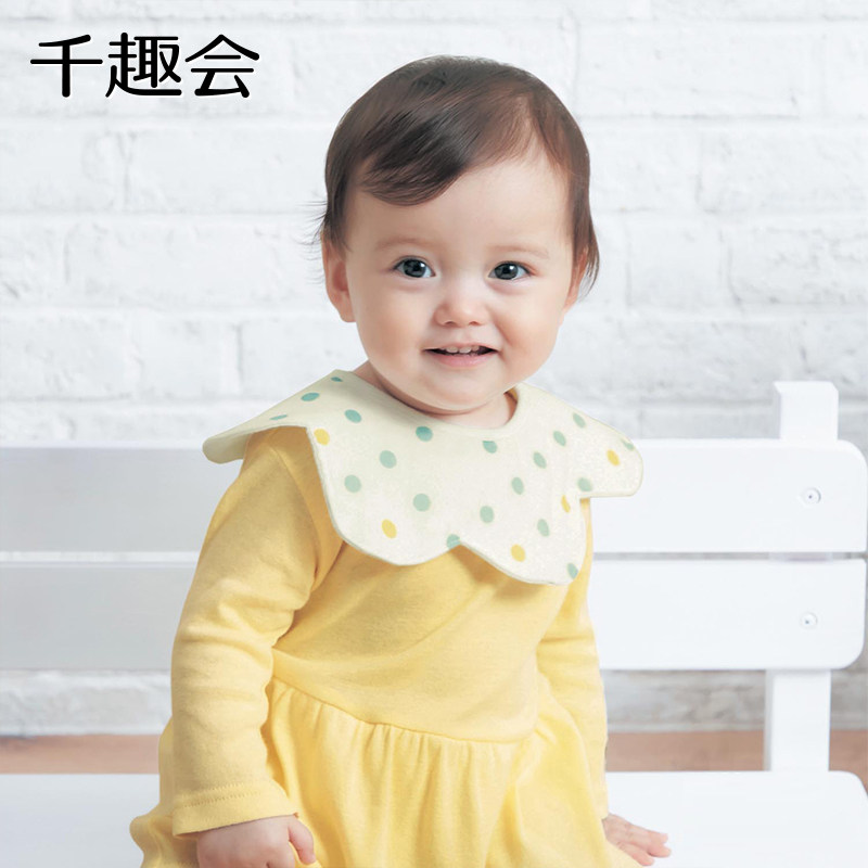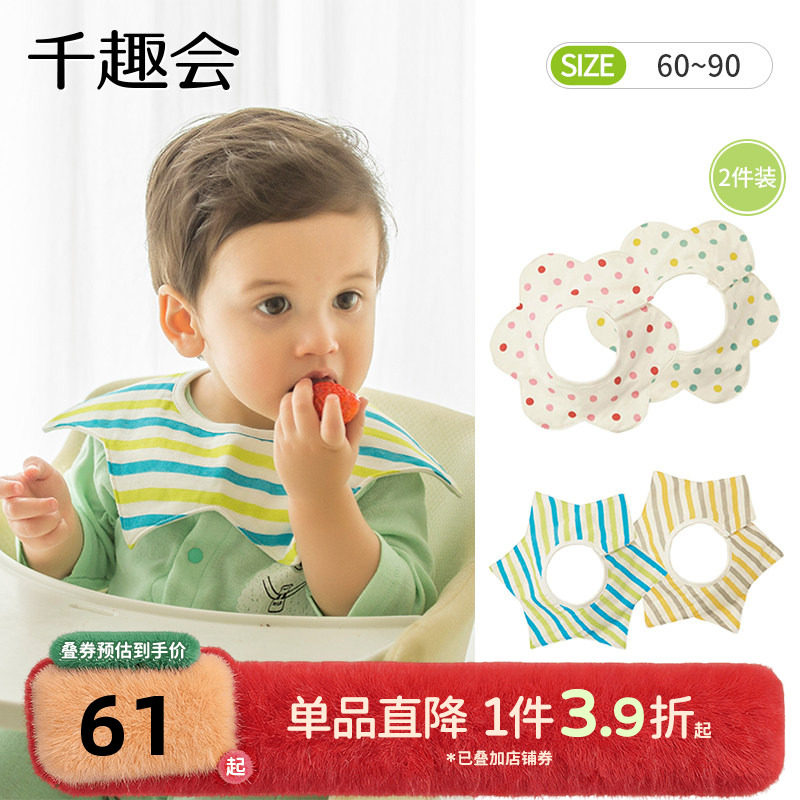 千趣会婴童用品饭兜360度防水纯棉婴幼儿宝宝围兜口水巾2条装