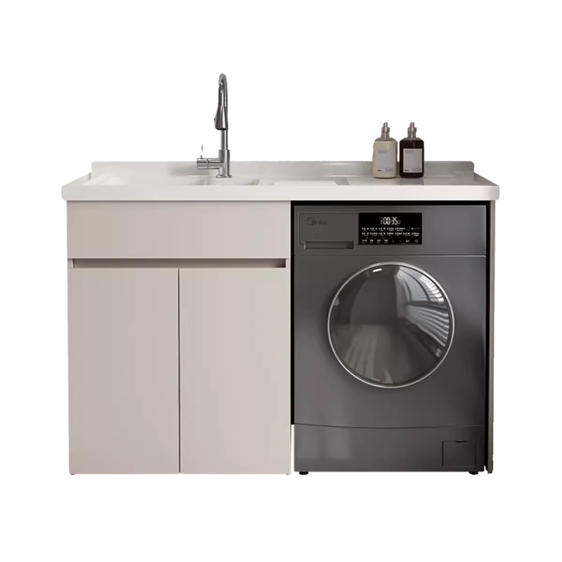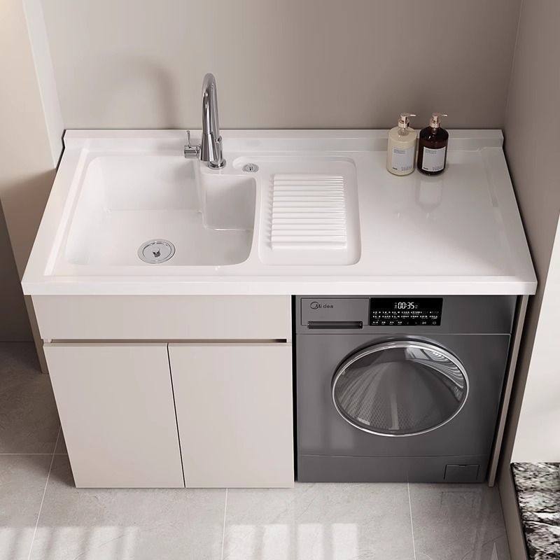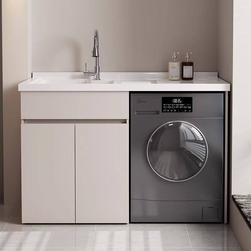 莫顿新款洗衣机柜蜂窝铝阳台柜石英石一体盆带搓衣板一体洗衣槽柜