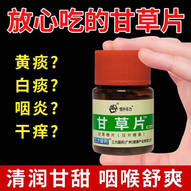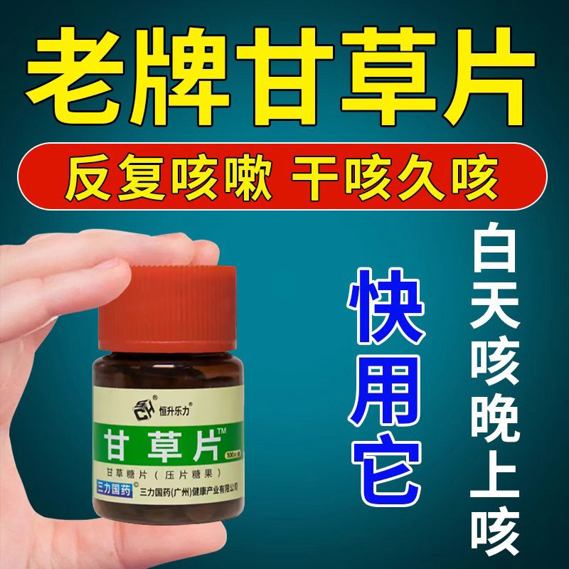 甘草片正宗老牌子中药复方100片嗓子干痒有痰黄痰白痰干咳异物感