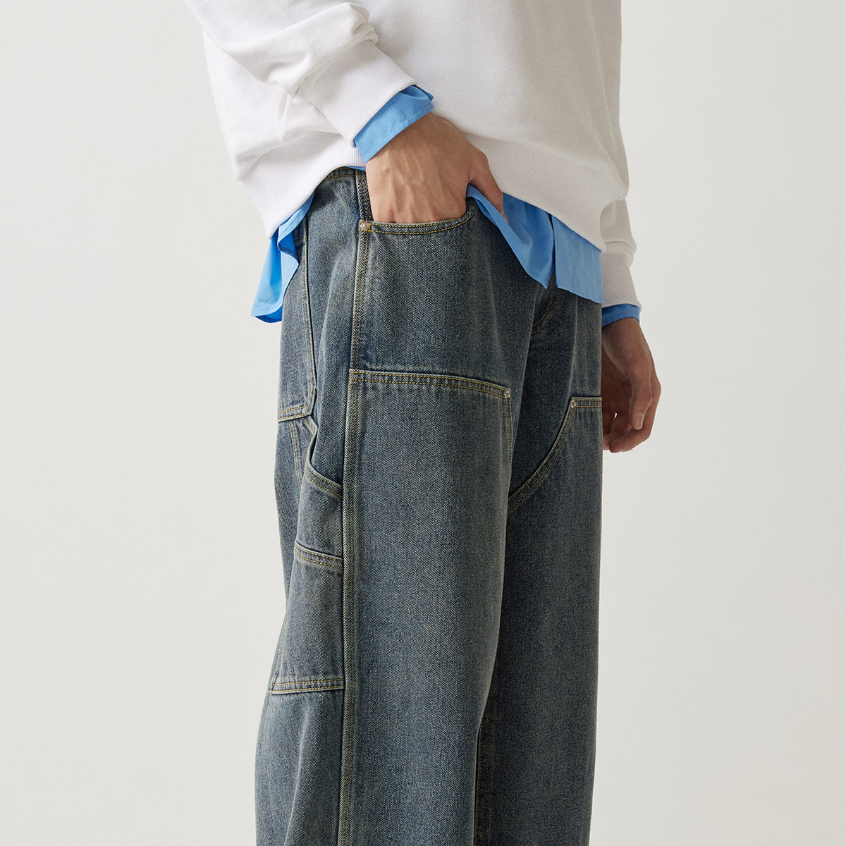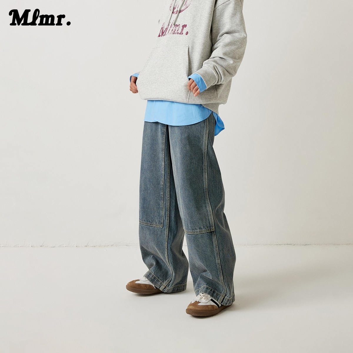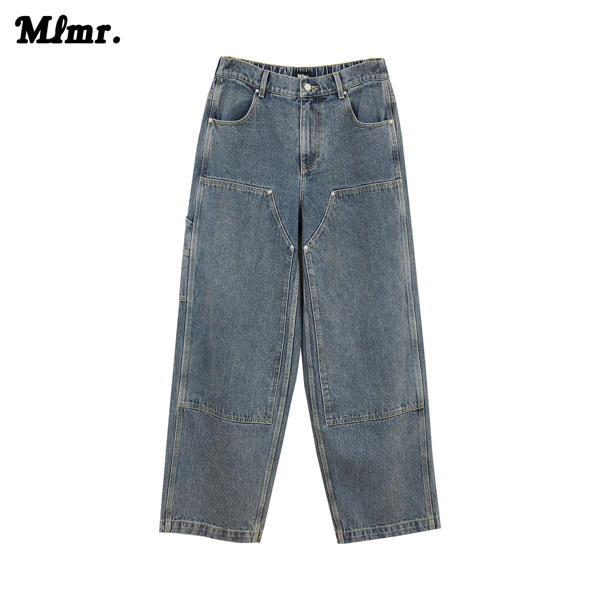 MLMR男装宽松工装版型牛仔蓝潮流秋季时尚纯棉牛仔裤长裤男女同款