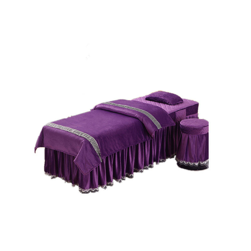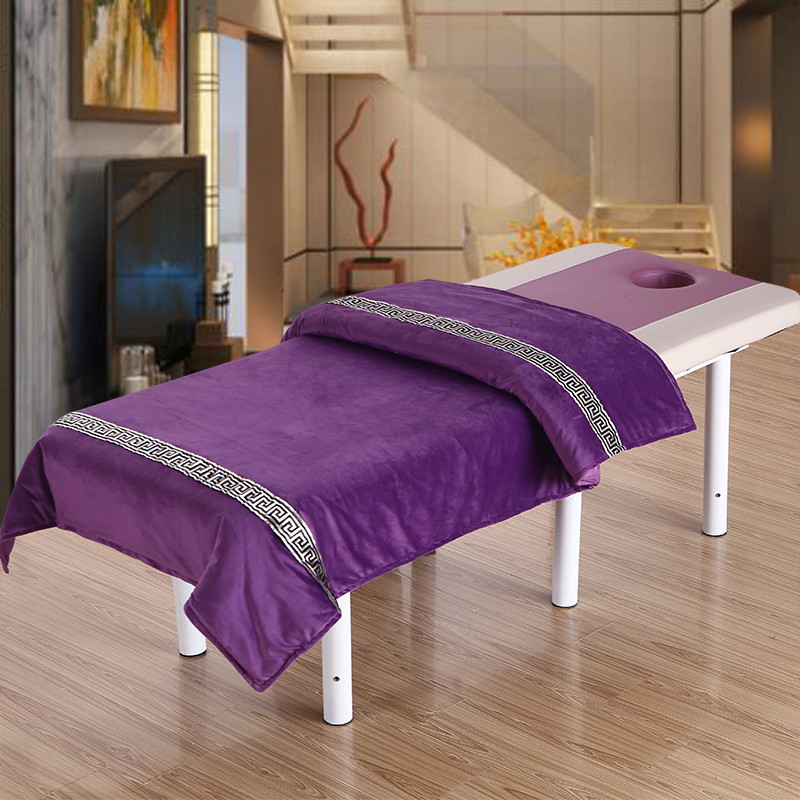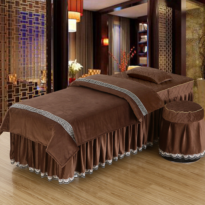 纯色保暖按摩美容院床罩理疗按摩四件套被单床垫套水晶绒被罩包邮