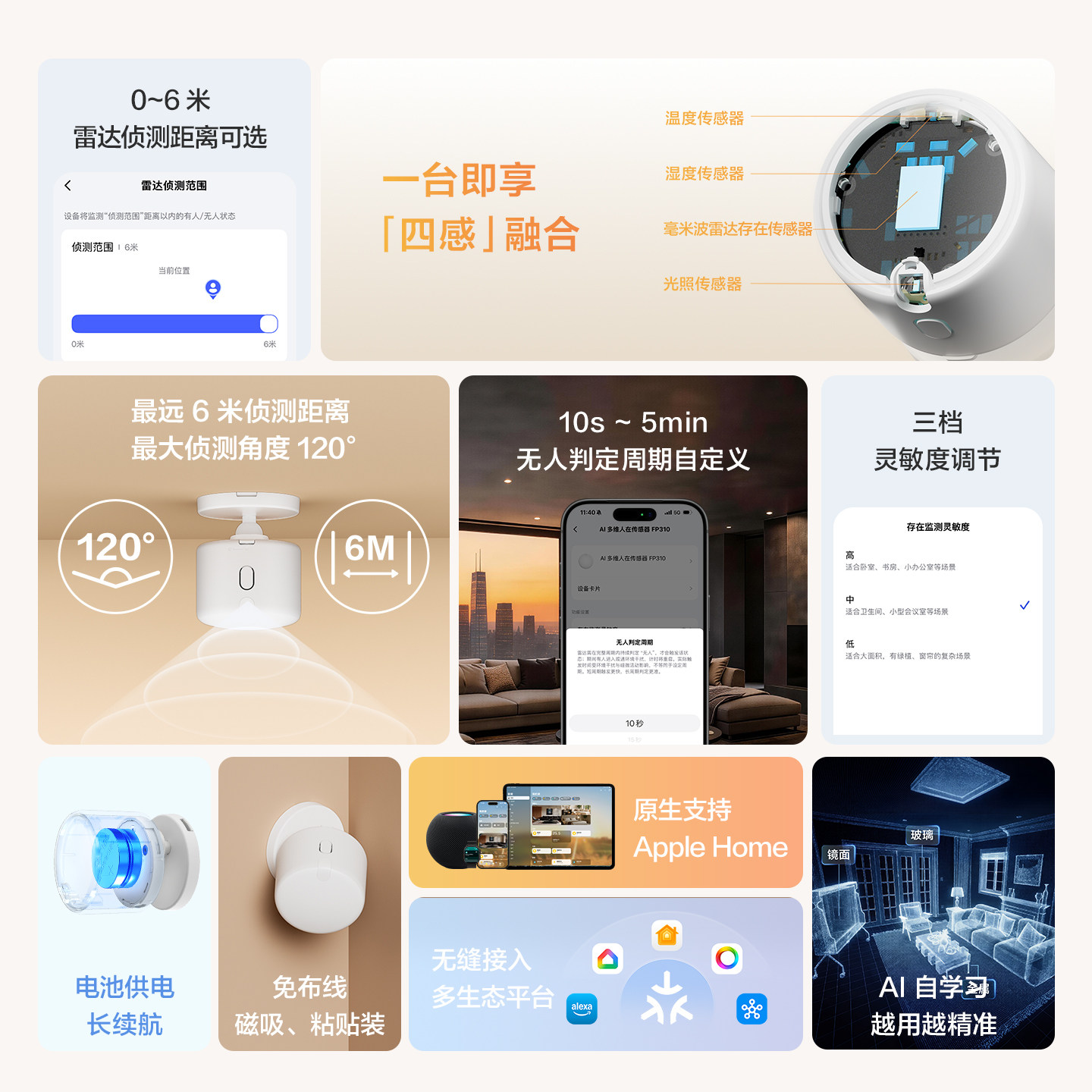 Aqara绿米联创AI多维人在传感器FP310智能HomeKit人体存在感应