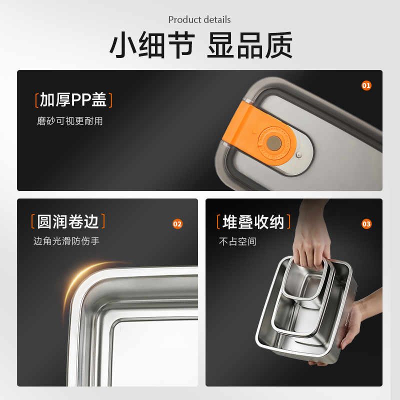 苏泊尔不锈钢保鲜密封盒水果便当盒带盖抗菌食品级冰箱专用餐饭盒