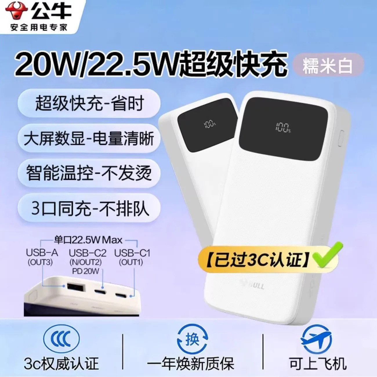 公牛充电宝3C认证10000毫安大容量超薄小巧移动电源轻薄适用苹果