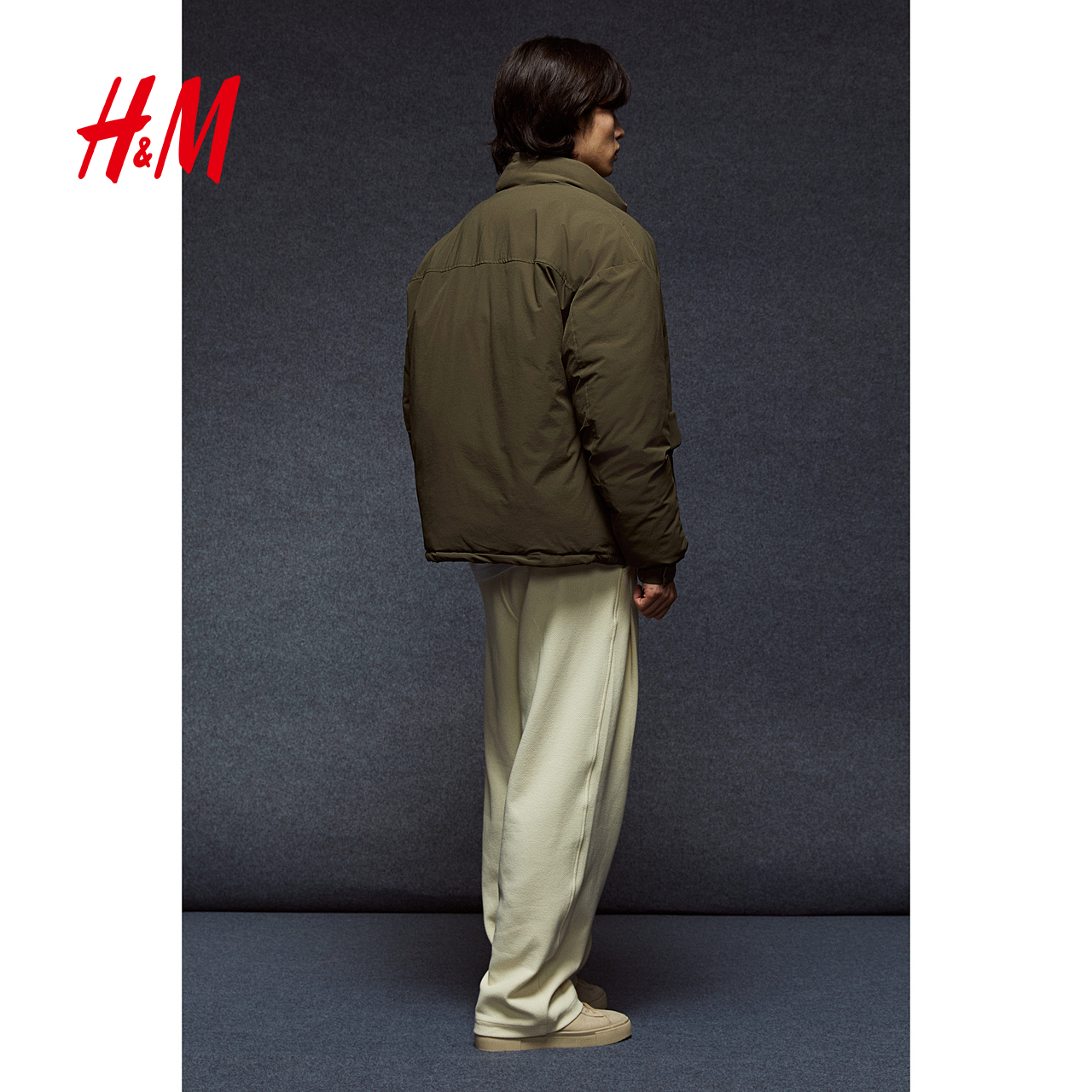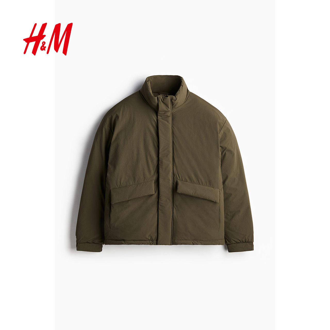 HM男装棉衣25冬季宽松尼龙防风立领棉服保暖棉袄1238557