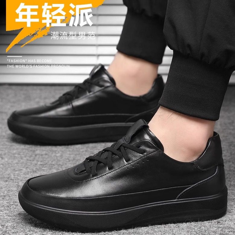 牛反绒休闲鞋男真皮厚底运动板鞋男款德训鞋子春秋百搭轻便男鞋