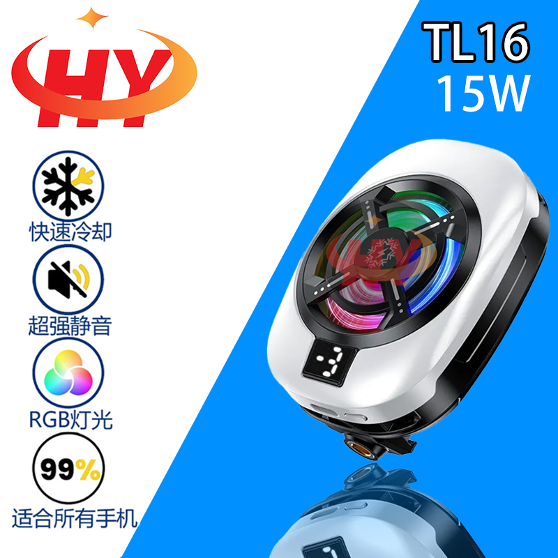 HY2025新款TL16手机散热器15W快速冷却超静音RGB三档调节数显款