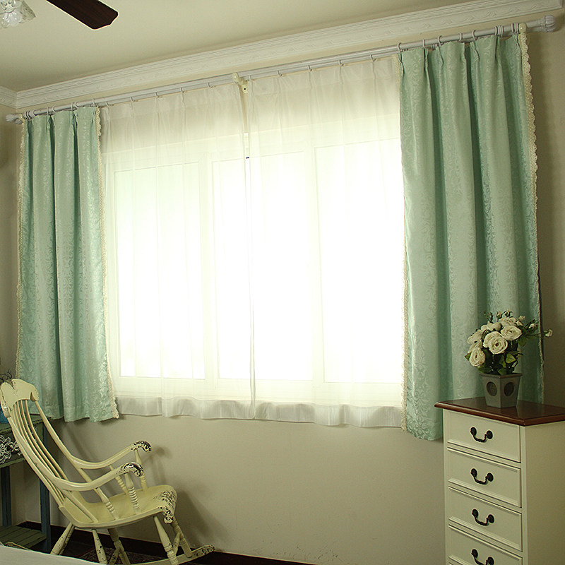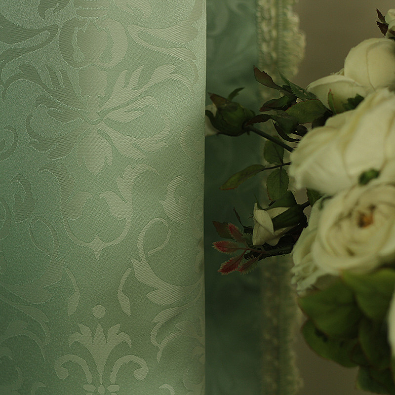 微瑕 奥迪丽绿 出口流苏宫廷窗帘成品欧式精致双层短帘固定褶送钩