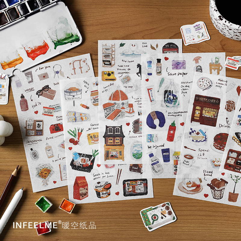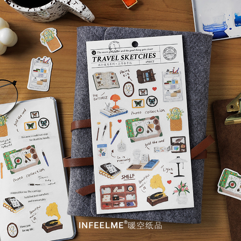 Infeel.me旅行速写和纸平面贴纸可爱卡通复古手账本素材DIY贴画