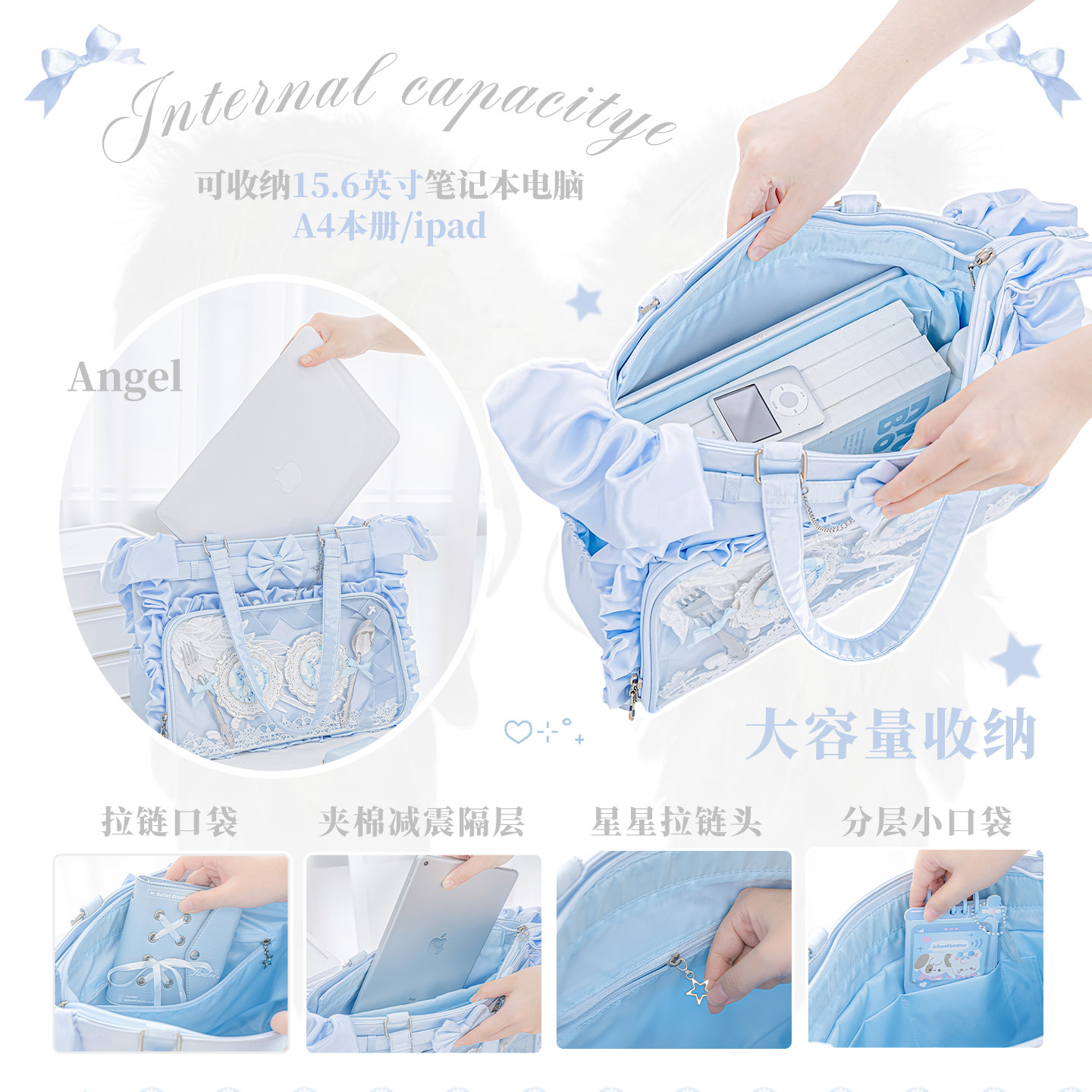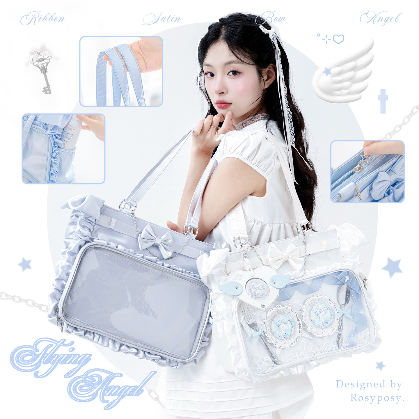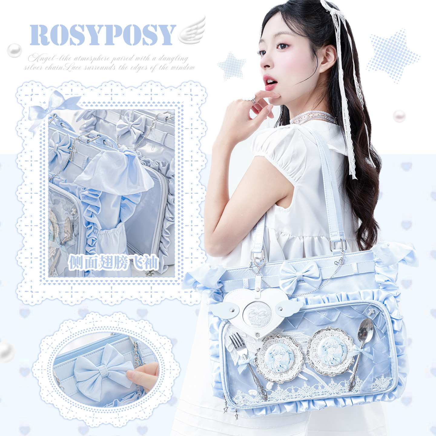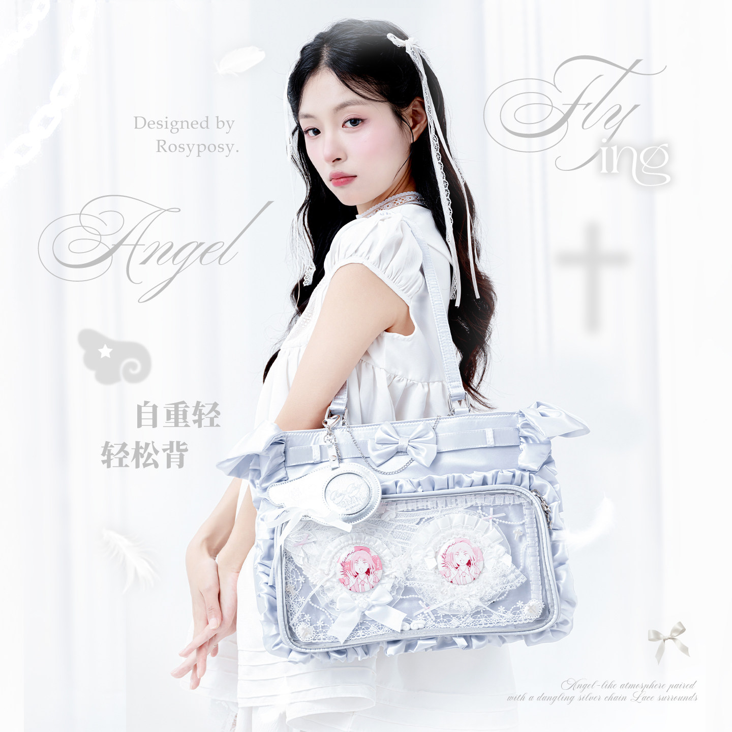 RosyPosy柔设缎面天使单肩痛包大食量娃包日常原创追星大容量包包
